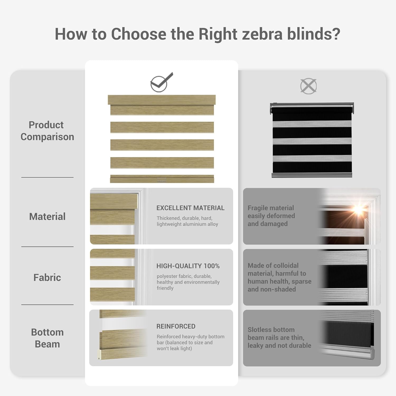 Cordless Zebra Blinds for Windows, Blackout Interior Blinds,Easy to Install,UV Protection,for Offices and Home,Custom Roller Shades, Mousse Light Bown,59" W x 64" H