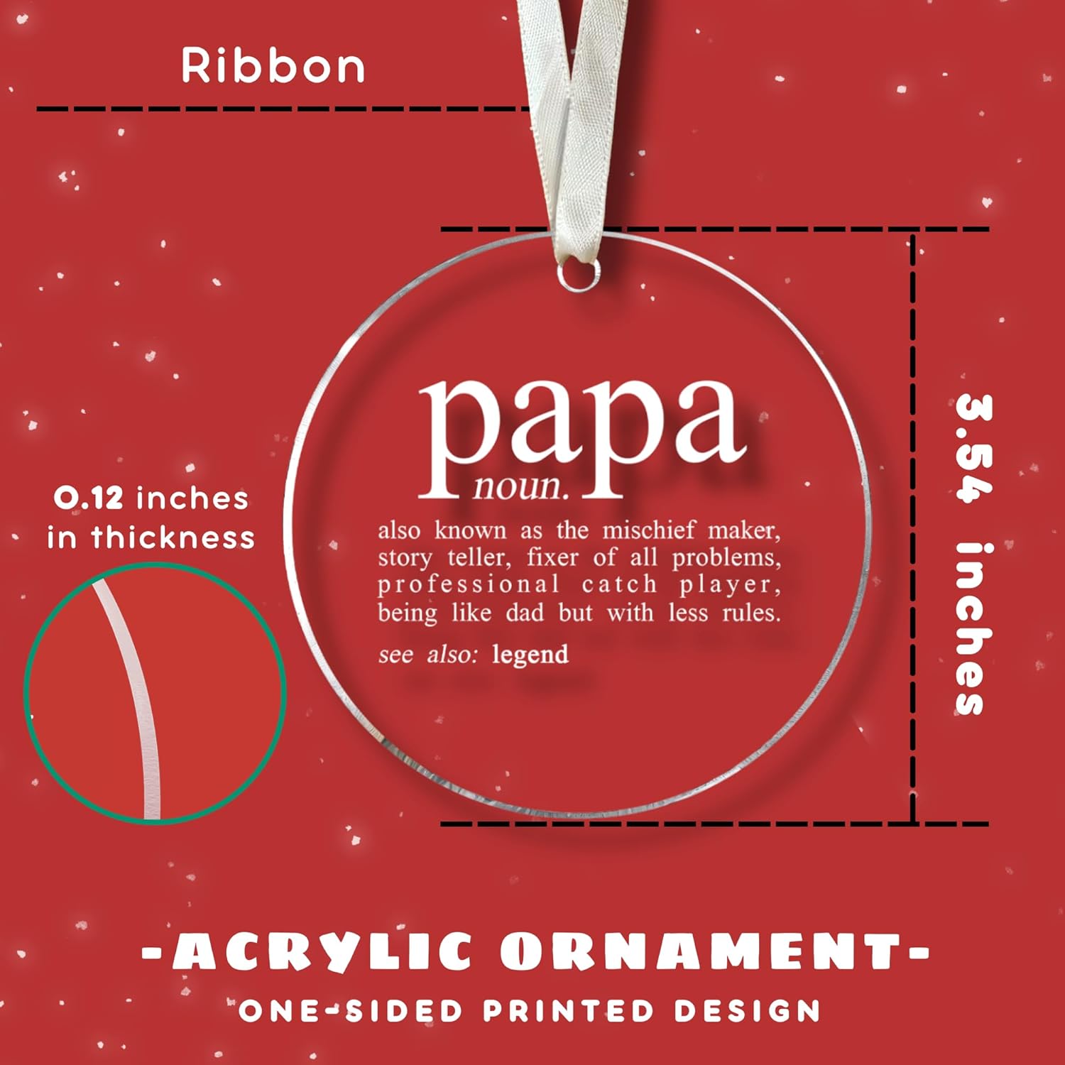 - ORNAMENT DETAILS: This is a grandpa ornament 2024 with a height of 3.54 inches/ 9.0 cm and a thickness of 0.12 inches/ 0.3 cm. Also, this ornament is light in weight, whether you hang it on Christmas tree, mantel, or flower garland..., it is sure to enhance the festive atmosphere and brighten up any corner of your home.