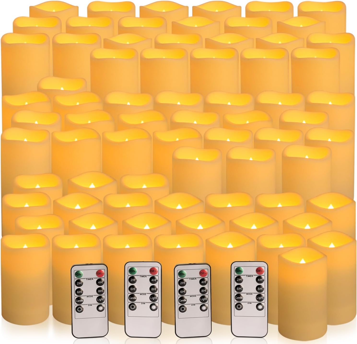 72-Pack Realistic Flameless LED Candle, Battery Operated with Remote Control, 3D Flame Pillar Timer Funtion Melted Top Safe,Perfect for Indoor/Outdoor Decor,Wedding,BBQ and Gift.