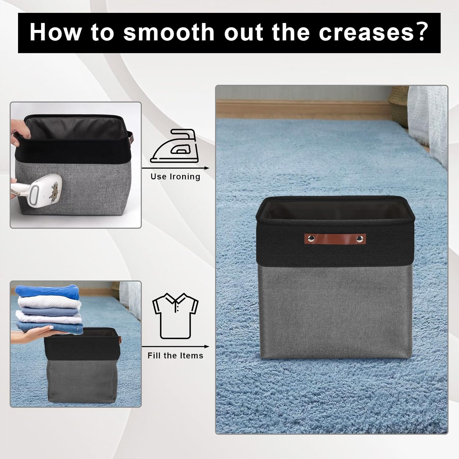 13x13 Cube Storage Bins, Collapsible Fabric Storage Box, 4 Pack Closet Baskets with Handles for Organizing, Shelf, Toys, Clothes, Home, Office, Nursery (Grey&Black)