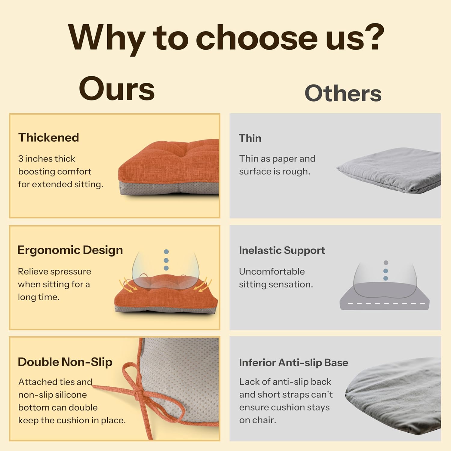 - Versatile Style: Whether you need extra support in the office or want to add a touch of style to your home, our seat cushions for dining chairs are the perfect solution. Use it in dining rooms, home offices, living rooms, bedroom, bars or even breakfast nooks to add comfort and a touch of elegance.