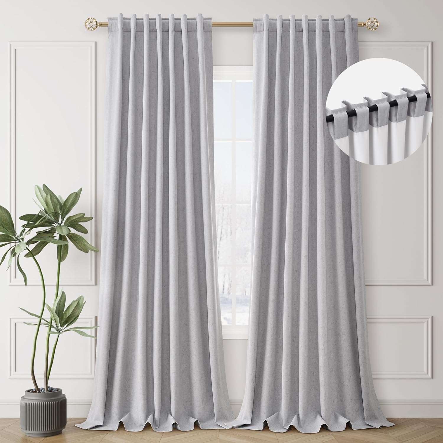 - 3 Hanging Options: Differ from the traditional curtains with grommet, BOODII linen curtains with back tab and rod pocket can full block sunlight fully. (1) Using the back tabs design to create an elegant pleated look and sit closer to the wall than traditional ring curtains, which helps to block out more sunlight; (2) Using rod pocket for a classic effect; (3) Using clip rings on track system or curtain rod, slide open/closed easily (clip rings are not included).