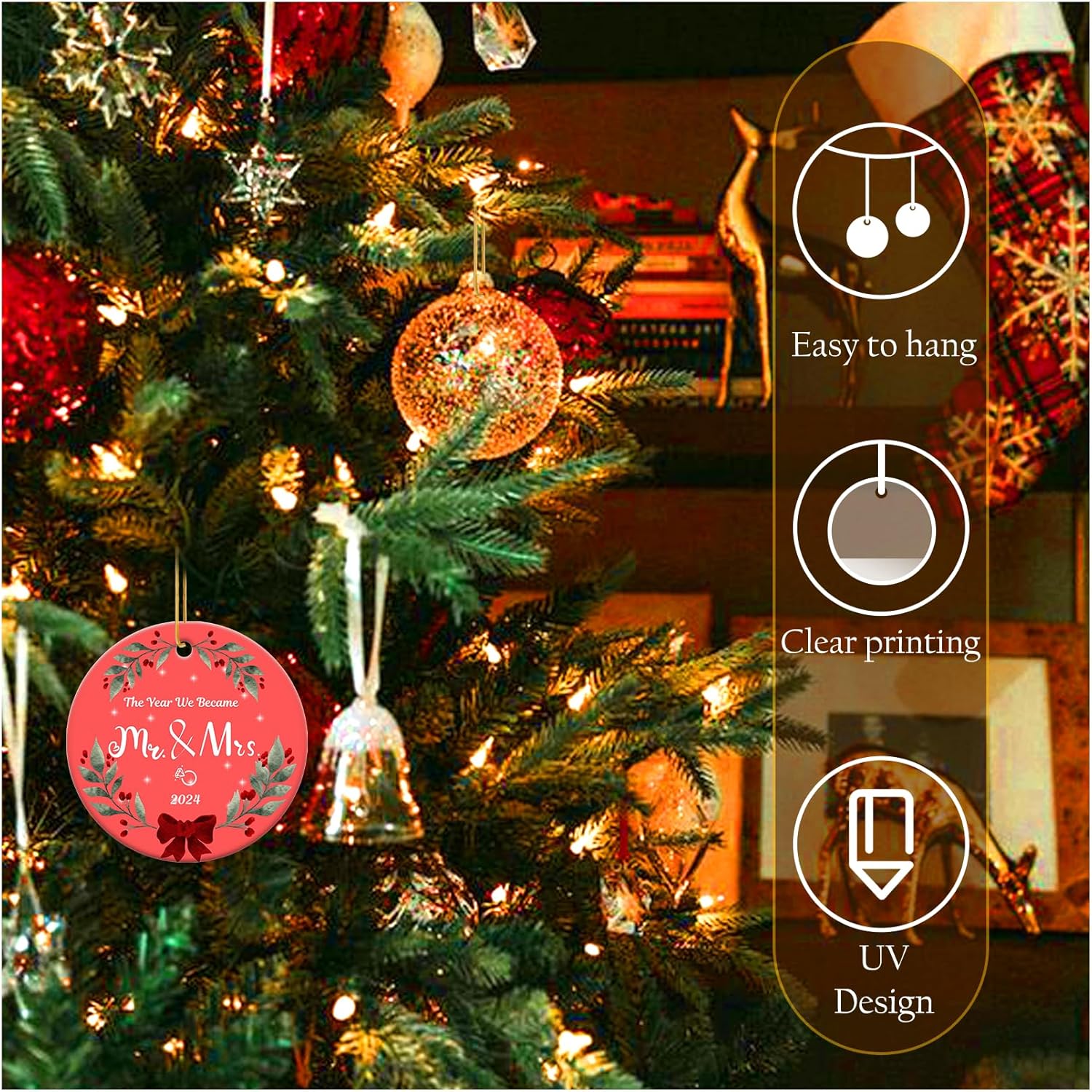 Our First Christmas Engaged Ornament for Couples 2024, Mr & Mrs Ceramic Keepsake Engagement Ornaments for Hanging Decor