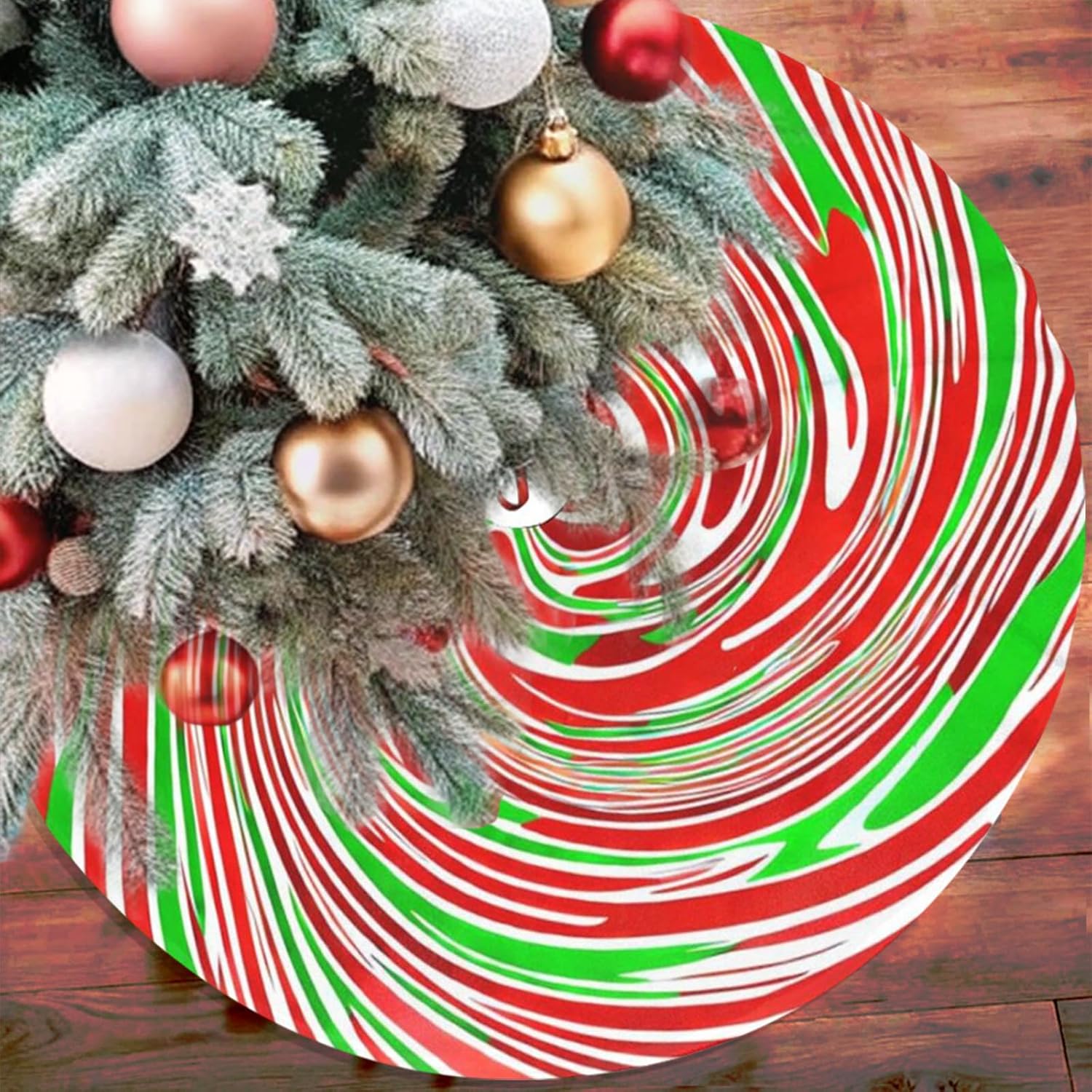 36" Red and Green Swirl Christmas Tree Skirt Sweet Peppermint Candy Tree Mat Base Cover for Xmas Festive Holiday Party Decoration Ornaments