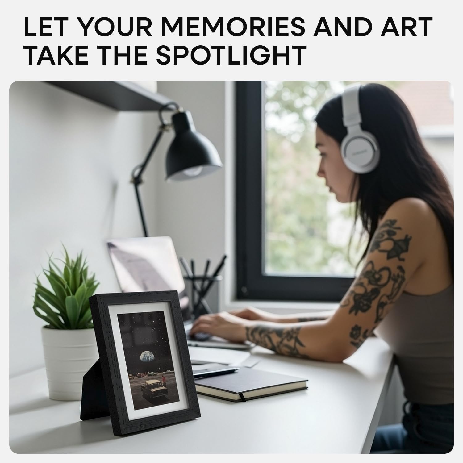 - DEEP MATTE BLACK, NOT SHINY OR FAKE Crafted in solid oak with a soft-touch matte finish, this frame offers a sleek black edge with real texture and high visual impact.