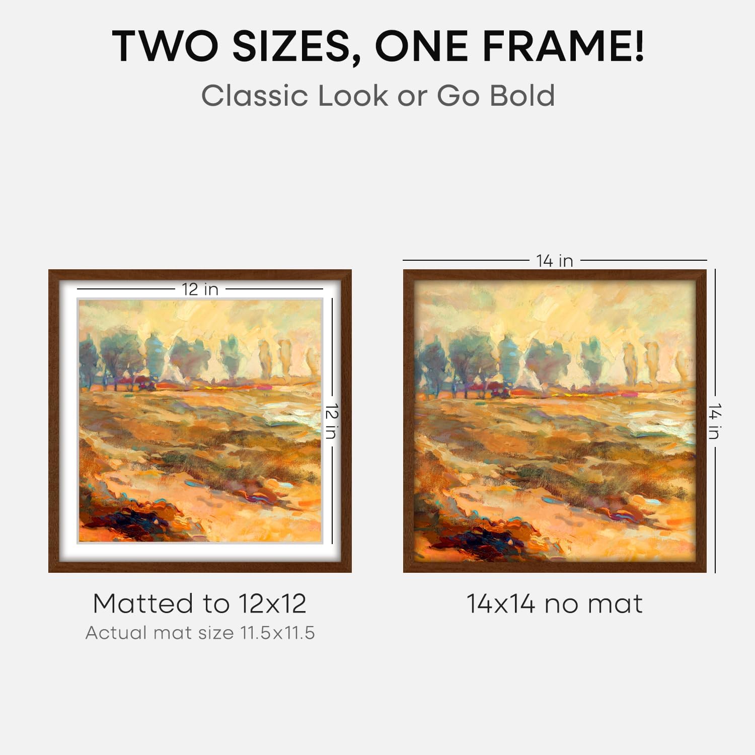 - MATTED OR EDGE-TO-EDGE—YOUR CALL. A crisp 12x12 white mat creates negative space, elevating your image with gallery precision. Or remove it for 14x14 bold, uninterrupted impact.
