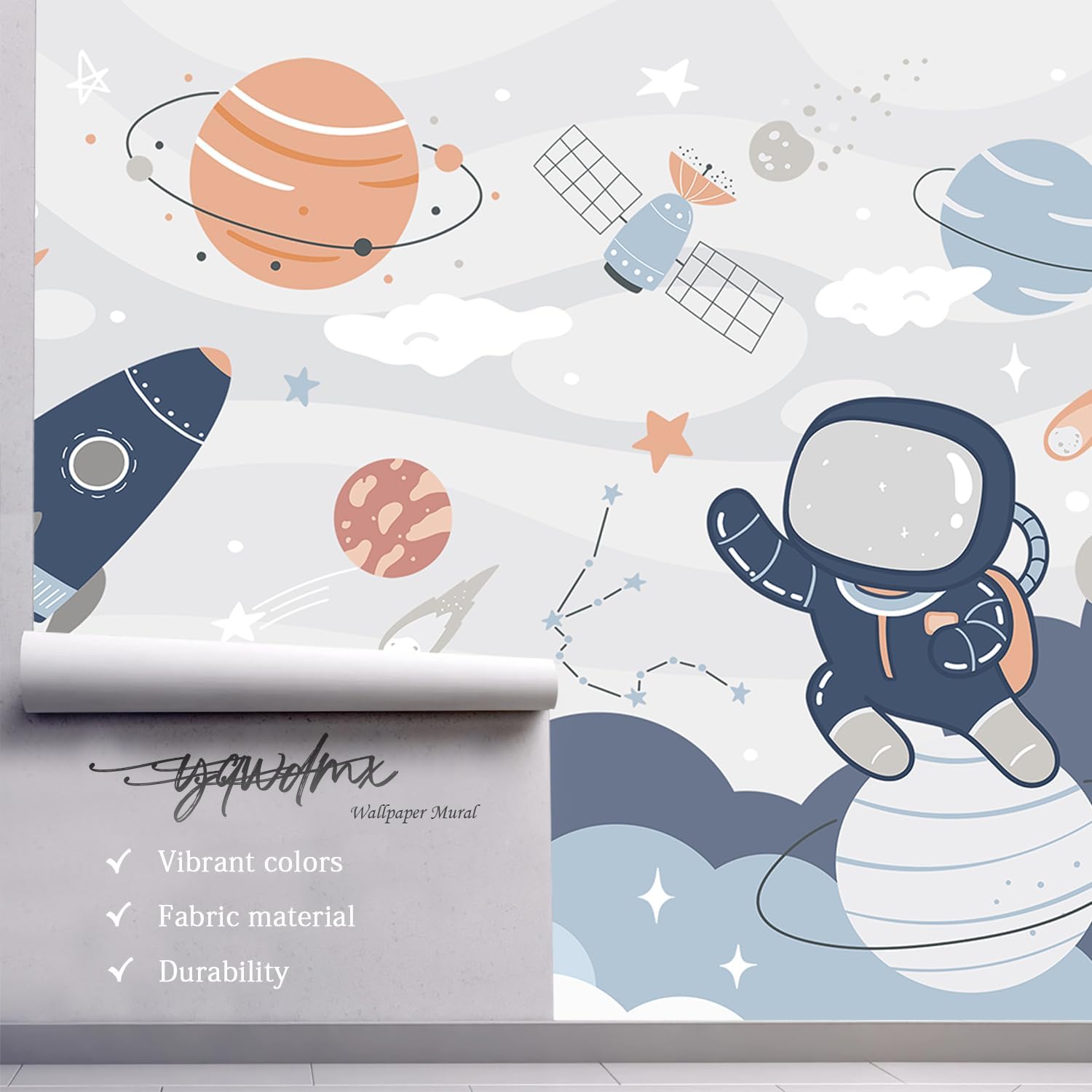 -Nursery Cartoon Space Planet boy Children's Room Wallpaper XT12 M 140" x 91"