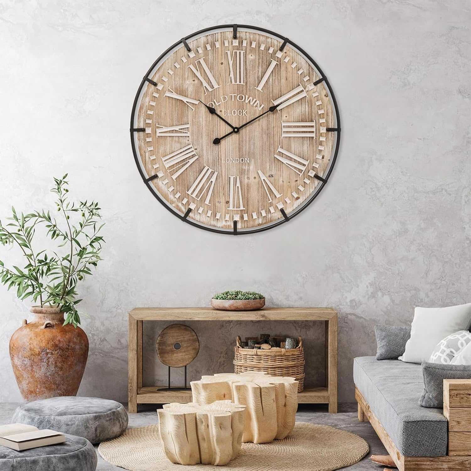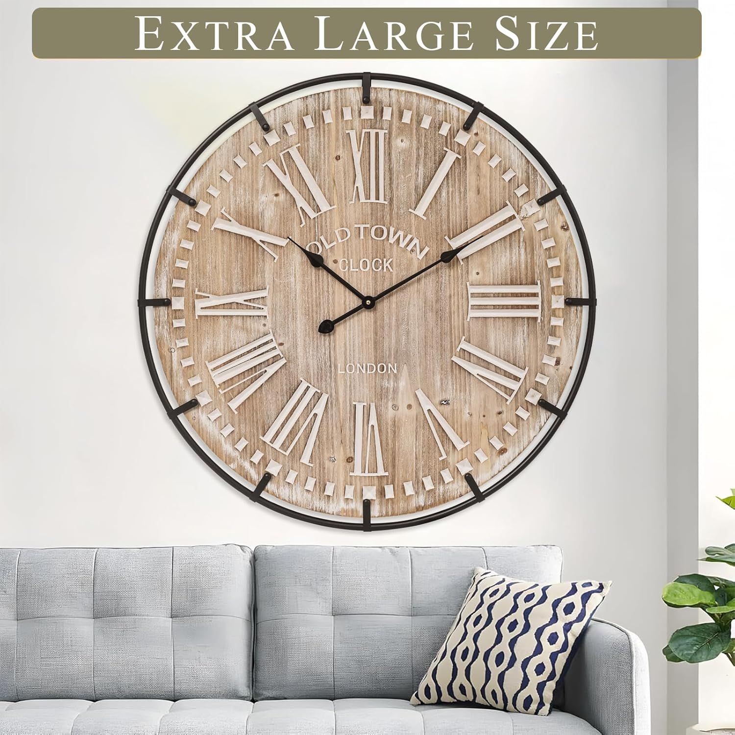 - Generous 30-Inch Farmhouse Presence: Command attention in any room with this substantial 30-inch diameter wall clock. Its impressive size makes it a clear, readable statement piece perfect for spacious walls.