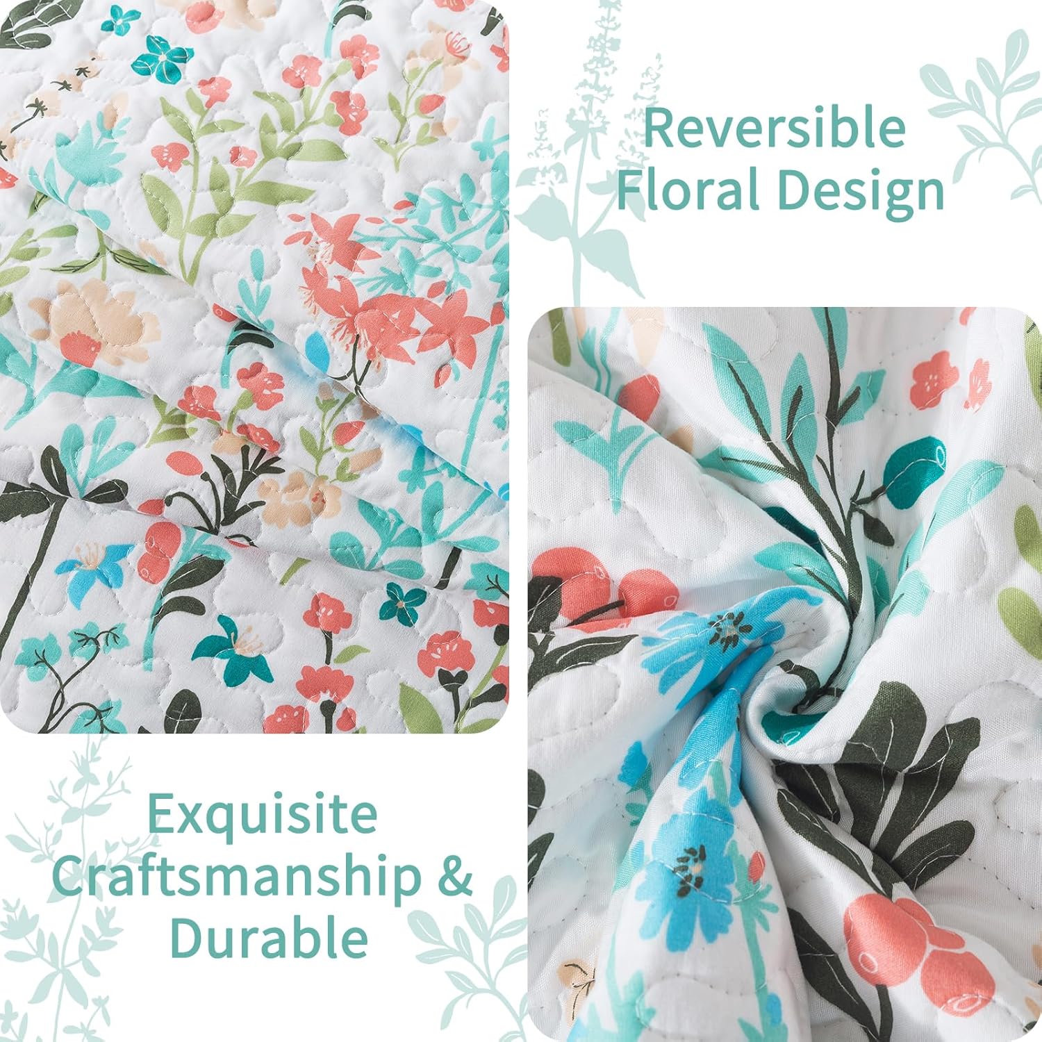 VAPUTAR King Size Quilt-3 Pieces Botanical Bedspread King Size (98 x 106 inch), Lightweight Coverlet Set with Garden Style Floral Pattern,Oversized Quilted Bedding Set with Shams for All Season