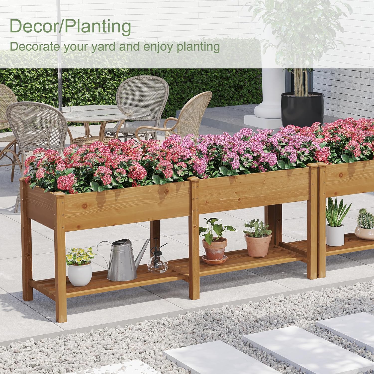 GHWIE Raised Garden Bed with Shelf,Elevated Wooden Planter Box with Legs,Garden Planter for Backyard, Patio, Balcony