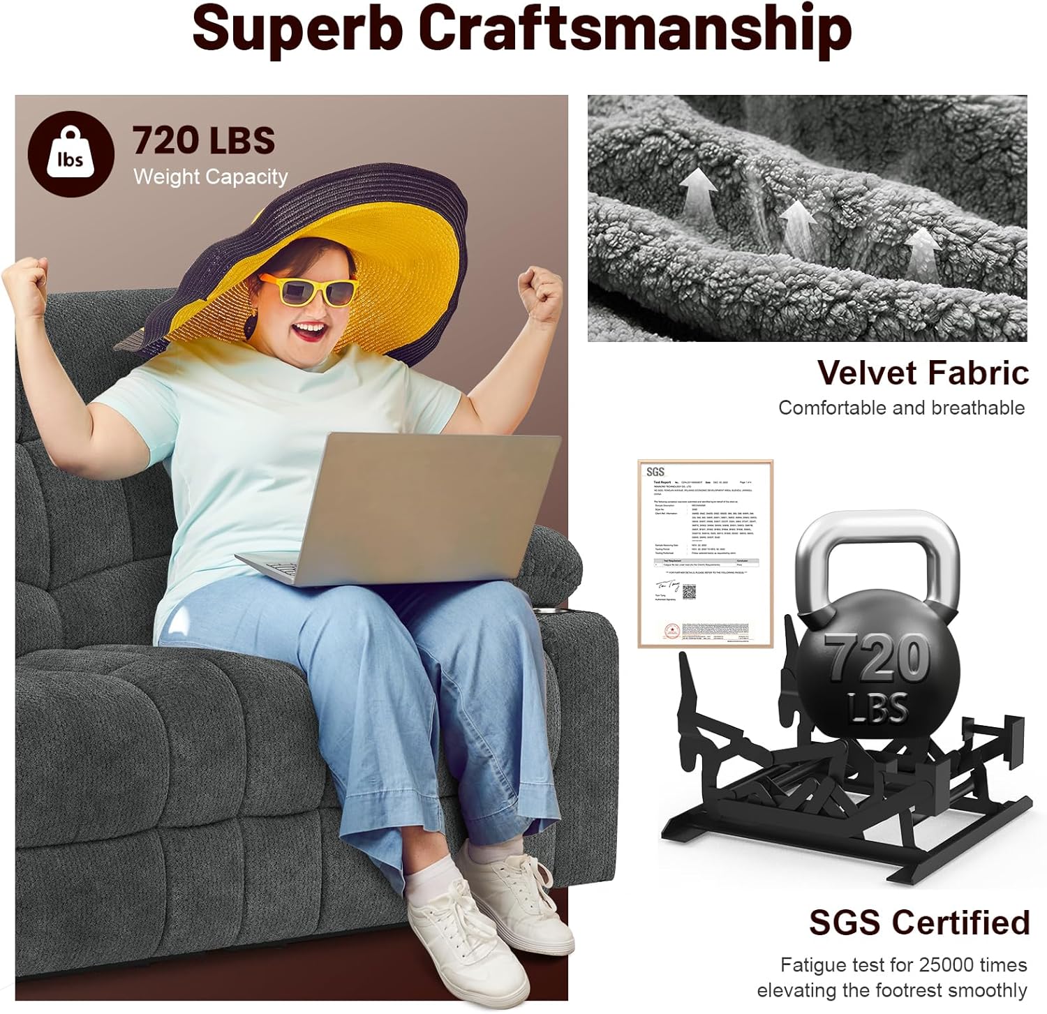 - QUALITY MATERIALS: Our loveseat recliners are made with attention to every production detail to create a comfortable experience for you. Inside the recliner is a sturdy SGS certified iron frame that can withstand up to 720 pounds, and there are 8 anti-fall brackets in the front and back to make the recliner more stable and provide you with enough safety and security, which is designed for long-term use. We also fill the headrest, backrest, armrests and cushions with SGS certified high quality sponge, with higher resilience, which greatly improves the sitting feeling, even after a long time of use, you don't have to worry about collapsing at all, they are elastic at all times.