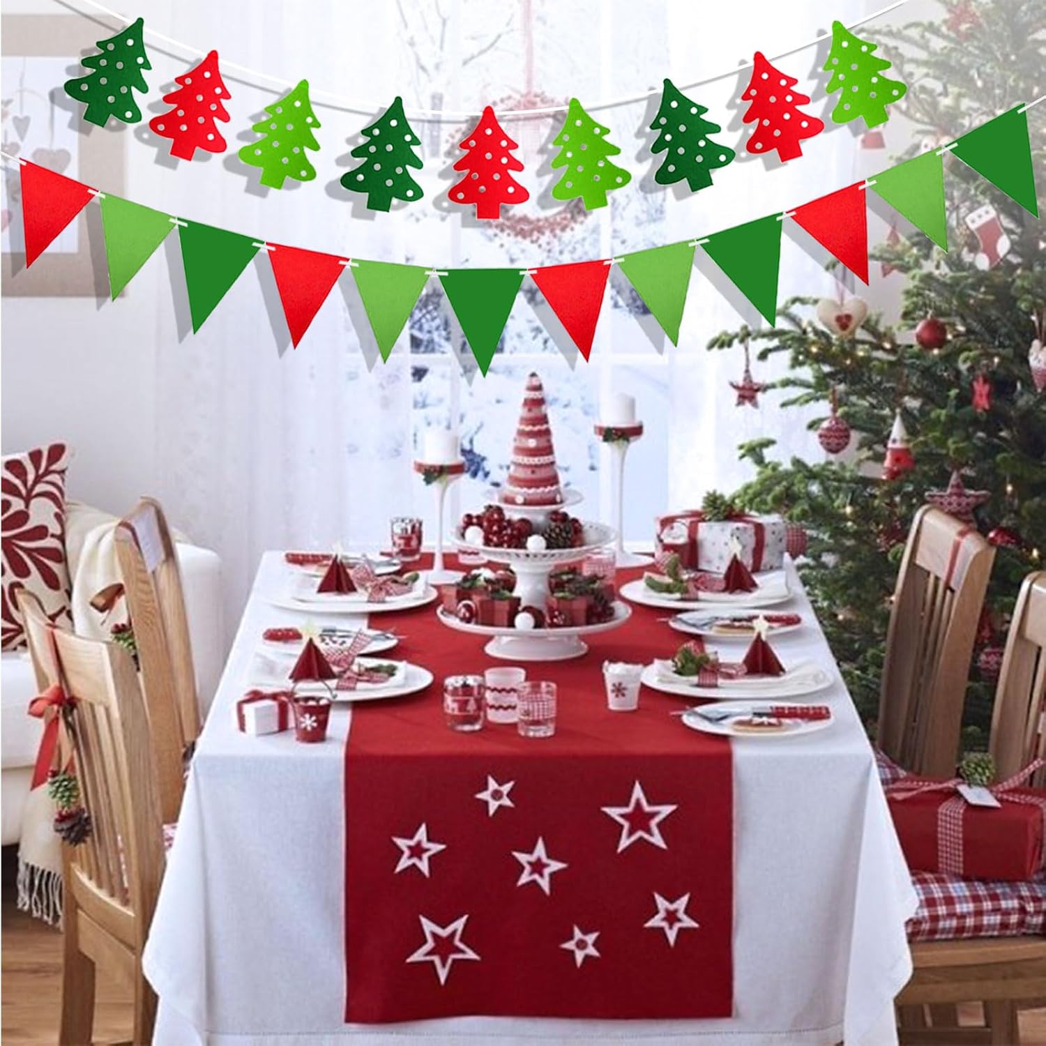 - Premium Material: The tassel garland is made of natural cotton with a soft texture. The pennant and Christmas tree banners are made of durable felt material. Lightweight and reusable, bright colorful enhance the Christmas festive spirit at your home or party