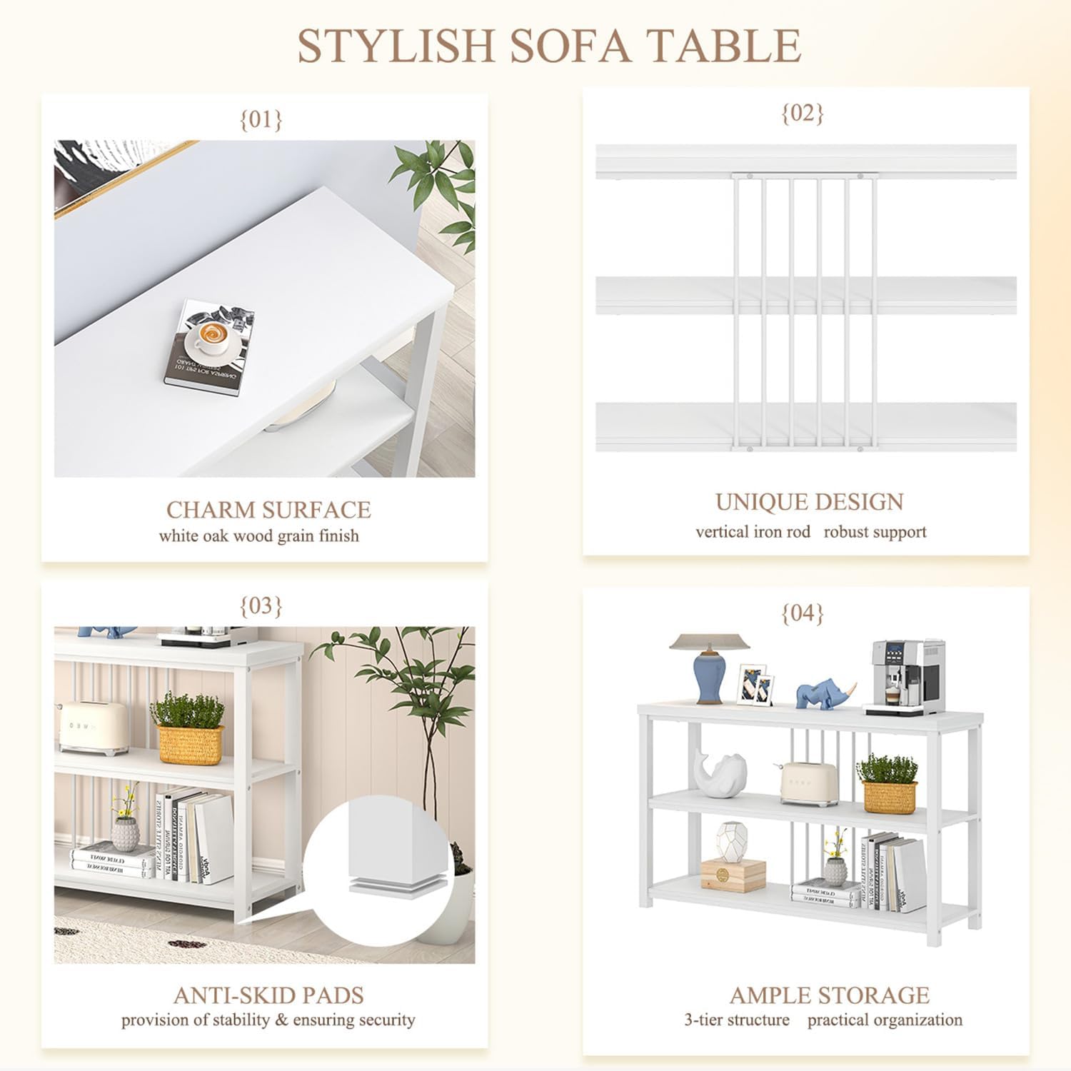 - Ample Storage Space: 3 tier shelves designed for displaying books, decorative items, framed photos or plants, providing ample storage while maintaining a tidy living space. Console table for living room, suitable for small spaces, minimizing space usage