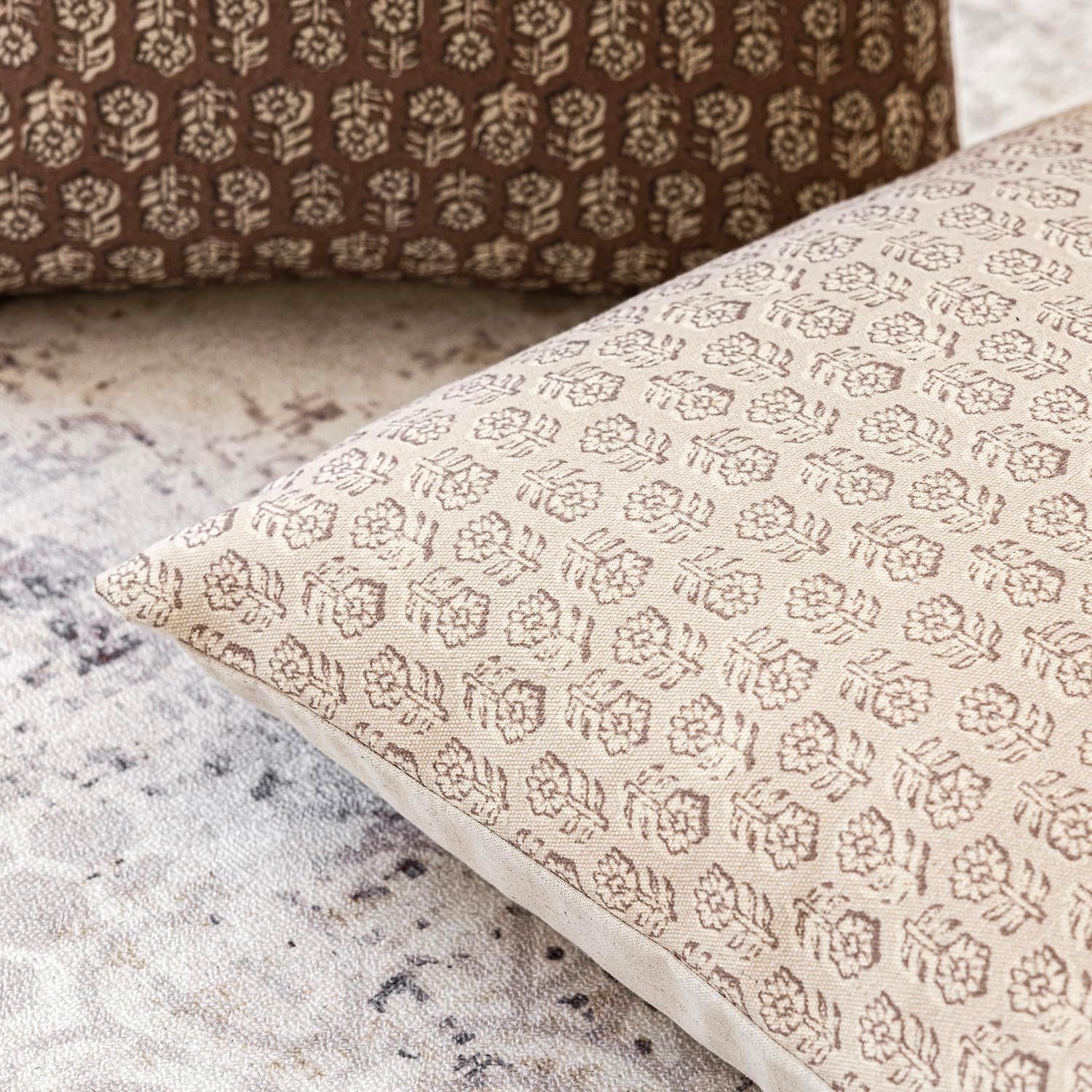 Foindtower Set of 2 Decorative Vintage Floral Print Throw Pillow Covers Neutral Modern Farmhouse Cushion Covers Boho Home Decor for Sofa Couch Chair Bedroom Living Room Outdoor,20×20 Inch,Ivory Beige