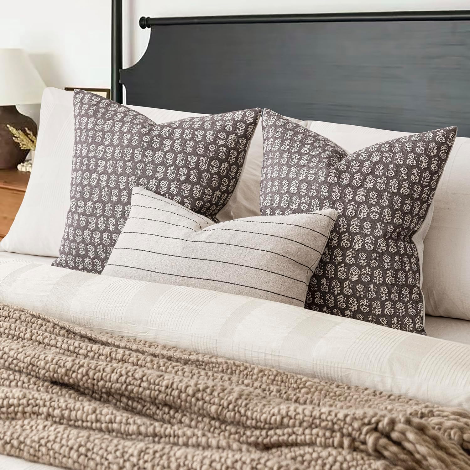 Foindtower Set of 2 Decorative Neutral Floral Print Throw Pillow Covers Vintage Accent Farmhouse Cushion Covers Boho Home Decor for Sofa Couch Chair Bedroom Living Room Outdoor,20×20 Inch,Rustic Gray