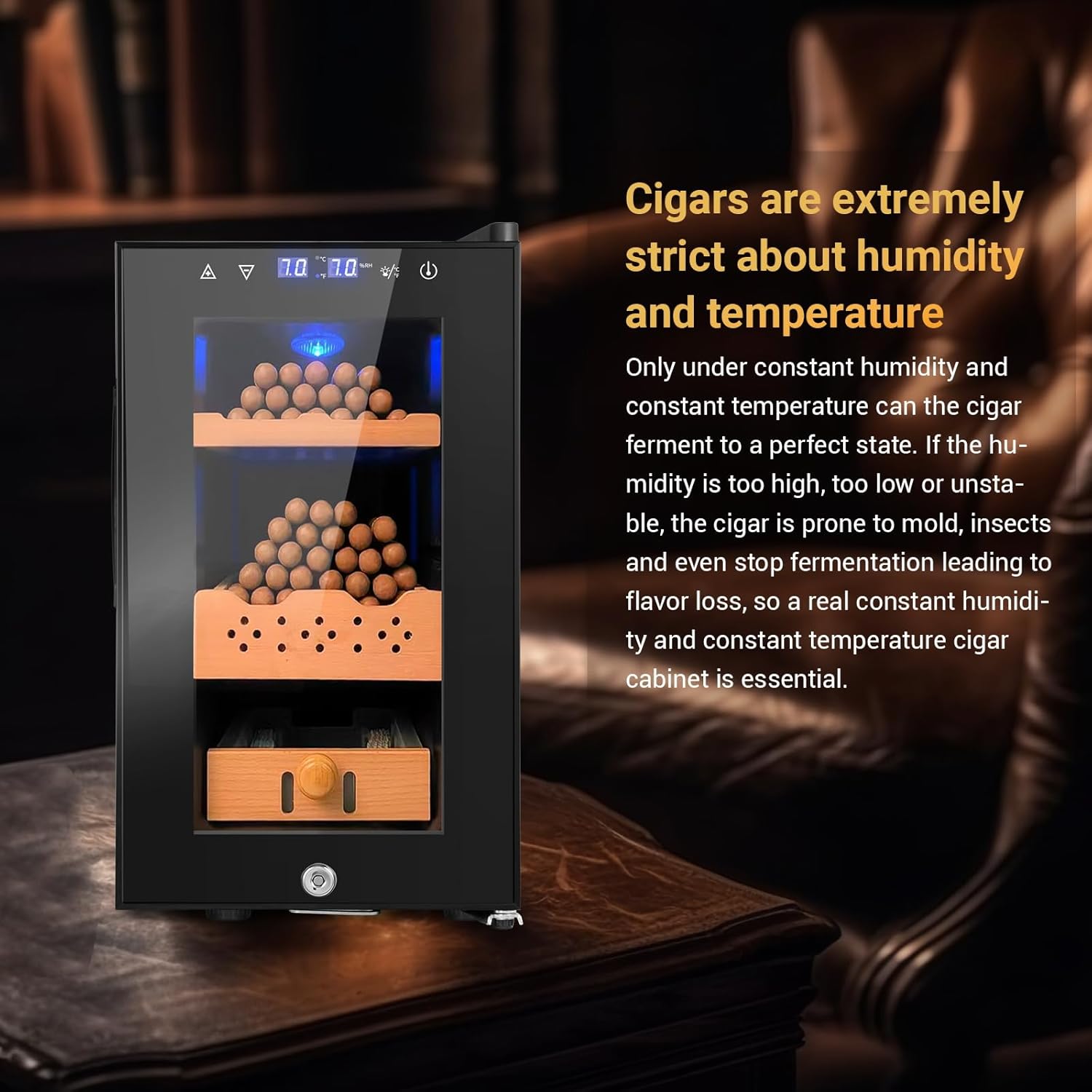 Electric Cigar Humidor, 25L 200 Counts Large Capacity,Thermostatic Electric Cooler Cabinet with Digital LED Screen, Safety Lock,Smart Humidity & Temp Control, Gifts for Men