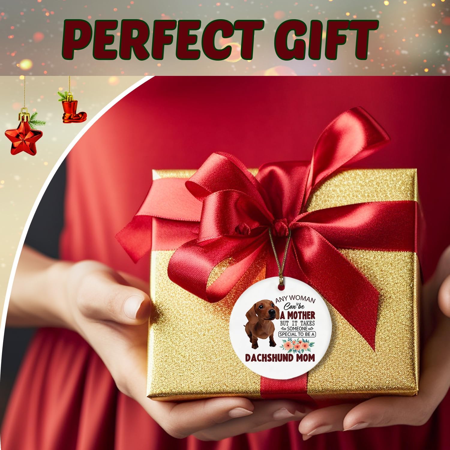Dachshund Ornaments, Dachshund Ornaments for Christmas Tree, Dachshund Gifts, Dachshund Gifts for Women, Weiner Dog Gifts, Dachshund Mom Ceramic Ornaments, Dachshund Decorative Hanging Ornament