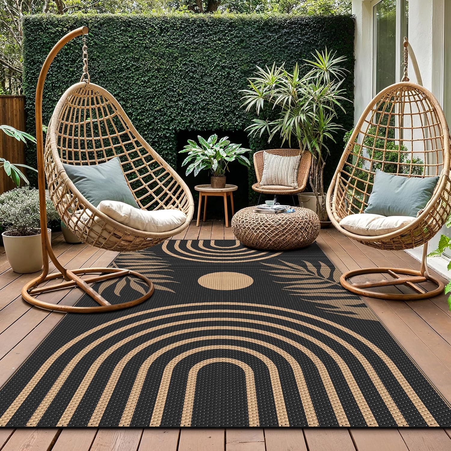 GENIMO Outdoor Rug 5' x 8' Waterproof for Patio Clearance, Reversible Plastic Straw Camping Carpet, Lightweight Rugs Mats for Rv, Backyard, Deck, Porch, Picnic, Balcony, Mix-Black & Brown