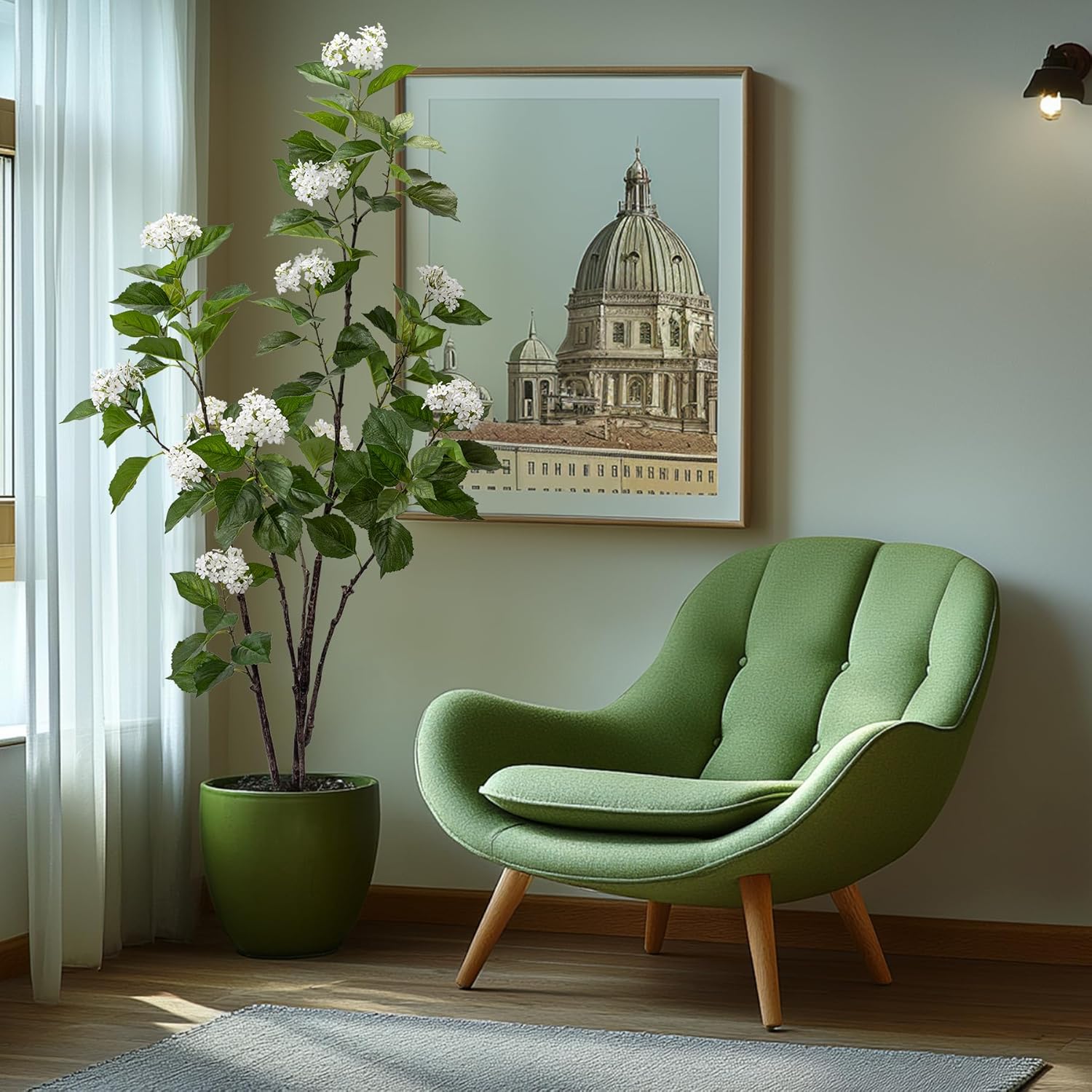 - 【ECONOMICAL】:The fake plant artificial tree whole tree has 4 branches, each branch is labeled , easy to install. The whole tree has 13 flowers, the flowers are made of silk fabric and the leaves are made of touch texture, easy to clean.artificial trees come in two colors, blue hydrangea and white hydrangea. These are tall indoor artificial plant decorations