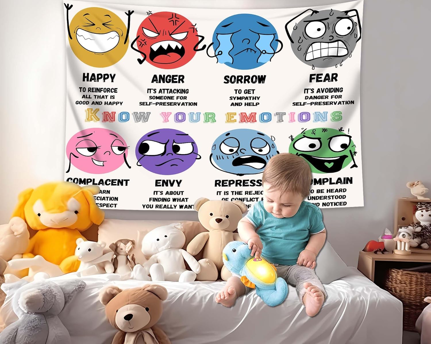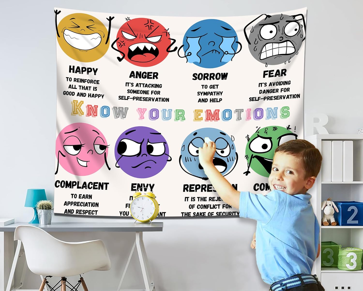 dueeia Mental Health Therapy Tapestry Wall Hanging Counseling Office Classroom Inspirational Motivational Tapestries for School Bedroom Living Room Wall Decor (90.6"x70.9")