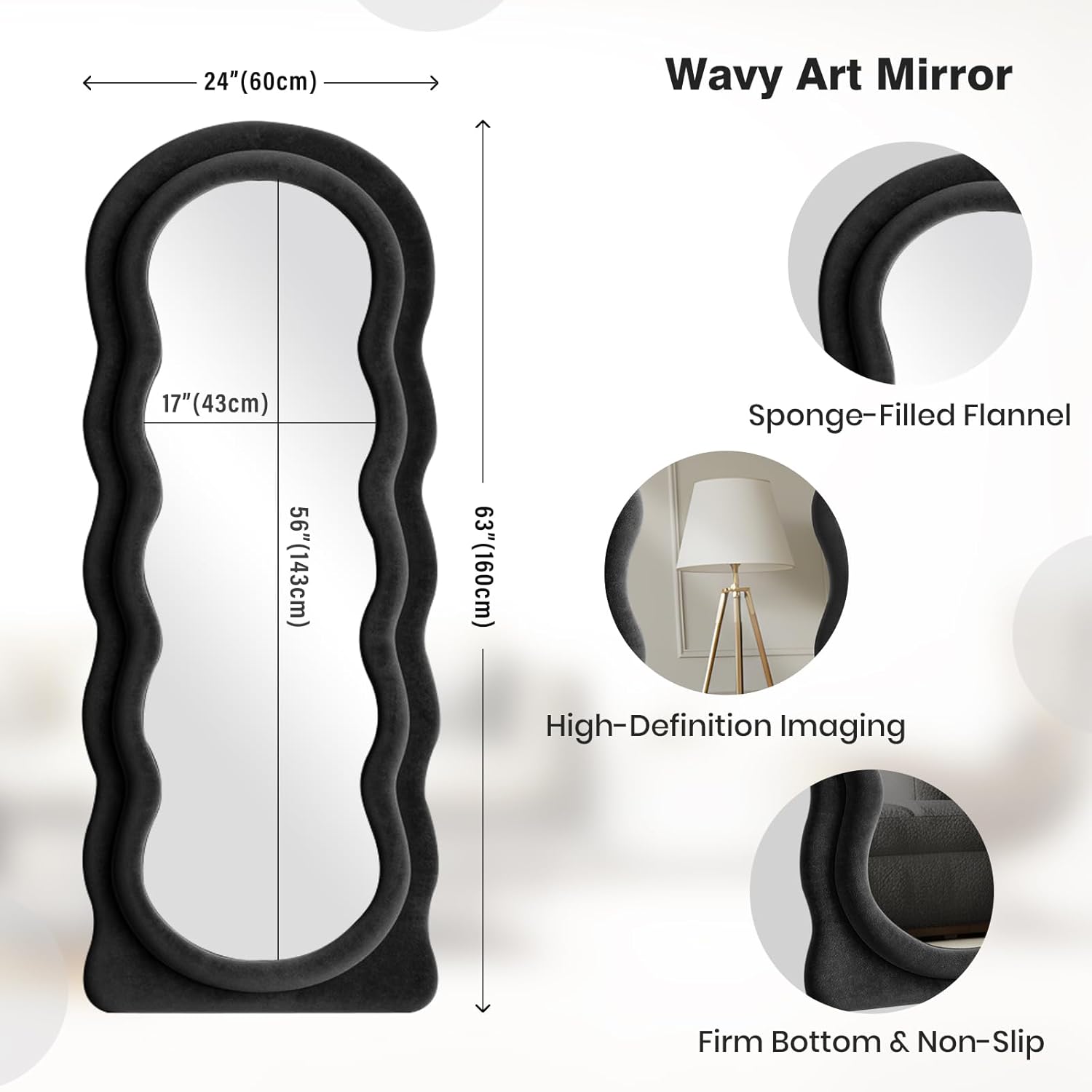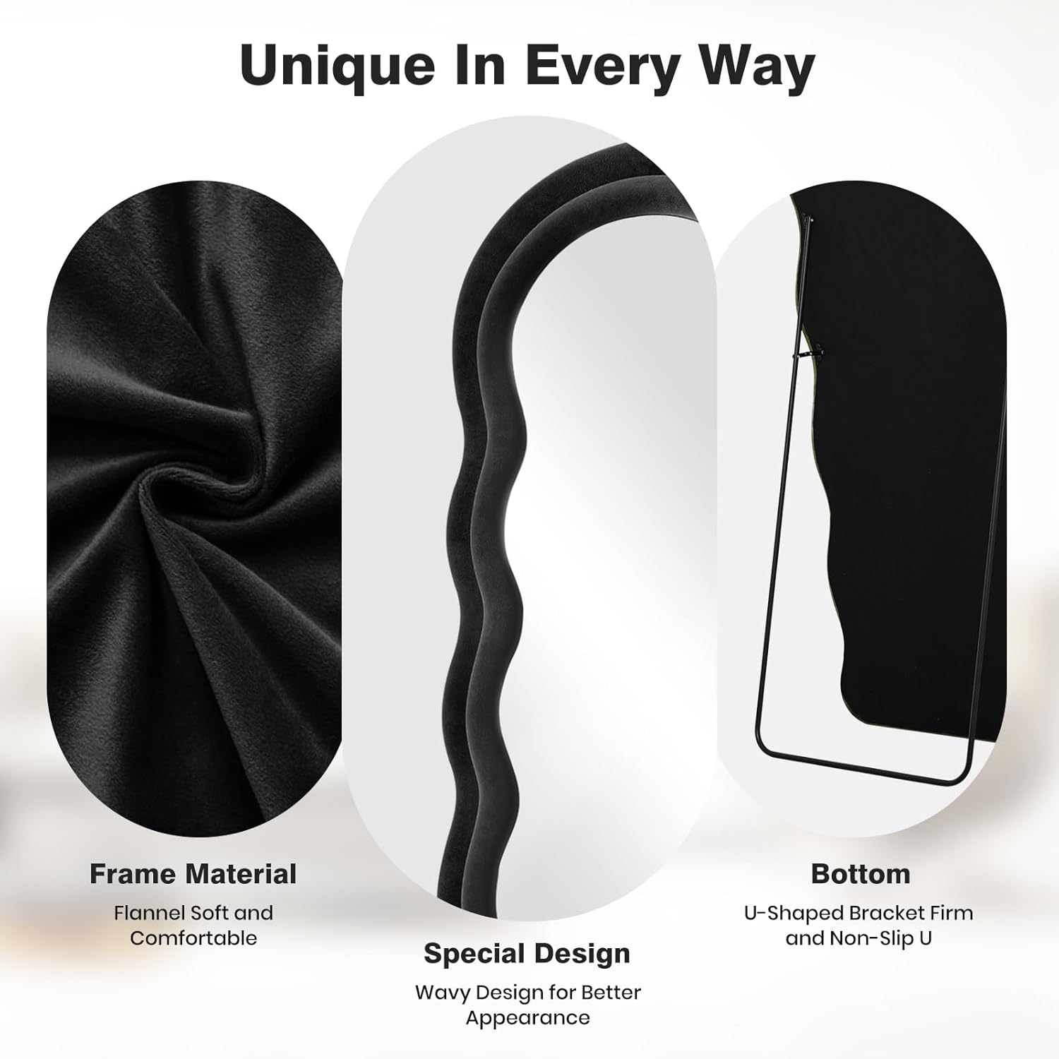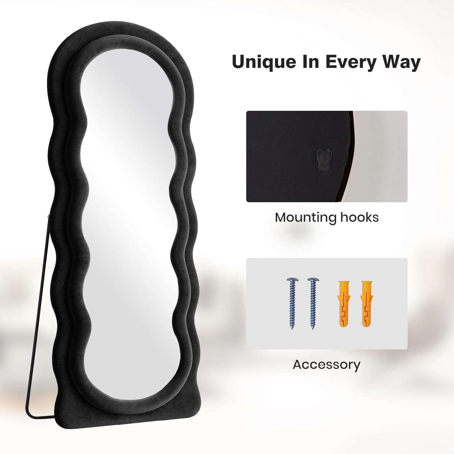 - Black Flannel Irregular Wavy Frame Floor Mirror: The full length standing mirror features a modern style that can complement any type of room decor, adding a touch of elegance to your room. It will be a great wall decor art piece for your home. This full body mirror with sleek looking is also great for selfies or pictures in general
