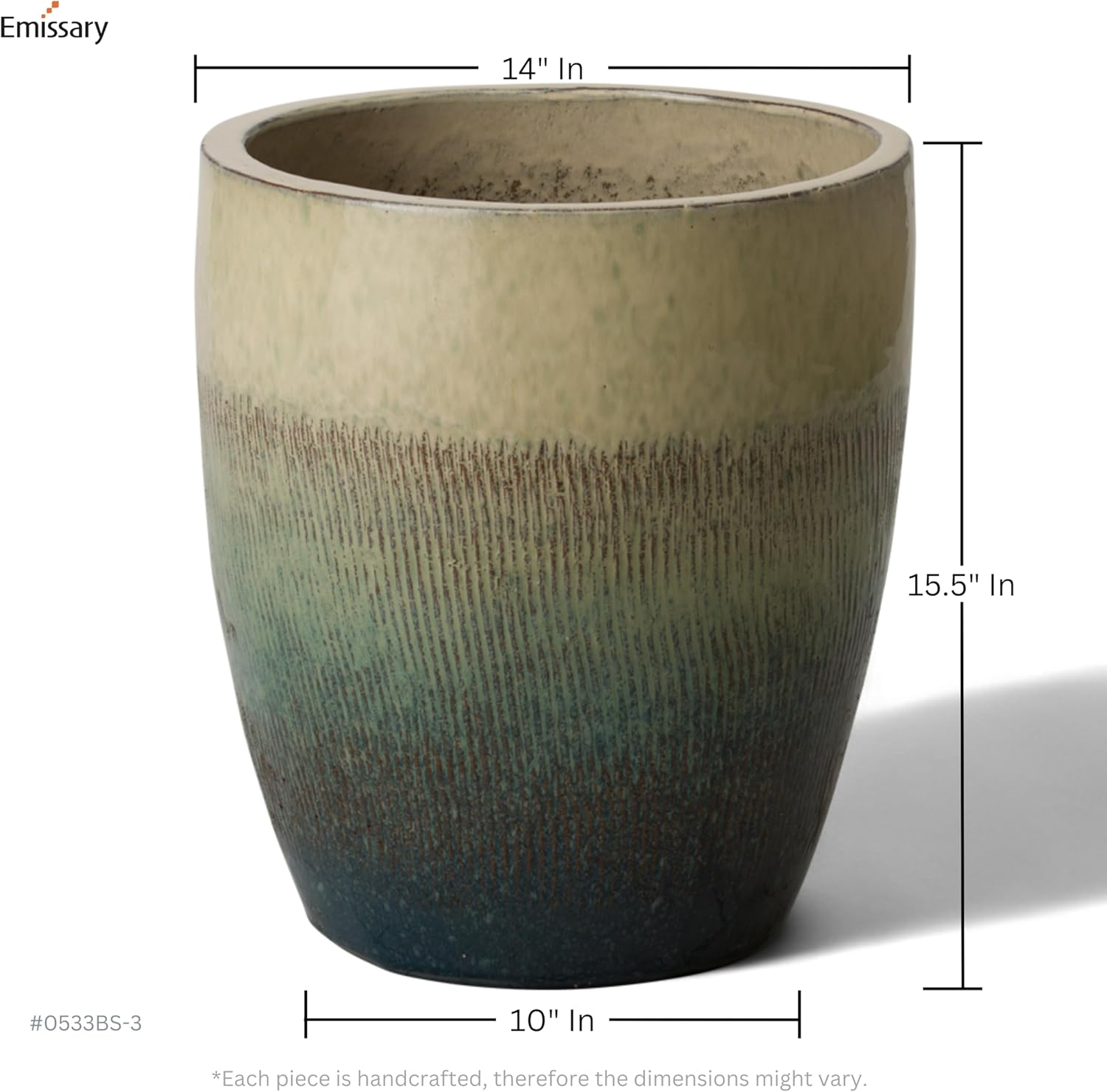 Emissary Bullet 14 in. Bayside Green Ceramic Round Planter (14 in. L x 14 in. W x 15.5 in. H) with Drainage Hole