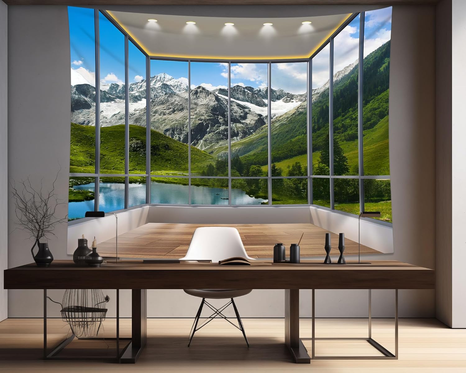 dueeia Window Tapestry Wall Hanging Mountain Forest Lake Nature Landscape Wall Tapestries for Bedroom Office Living Room Wall Decor (59.1"x39.4")