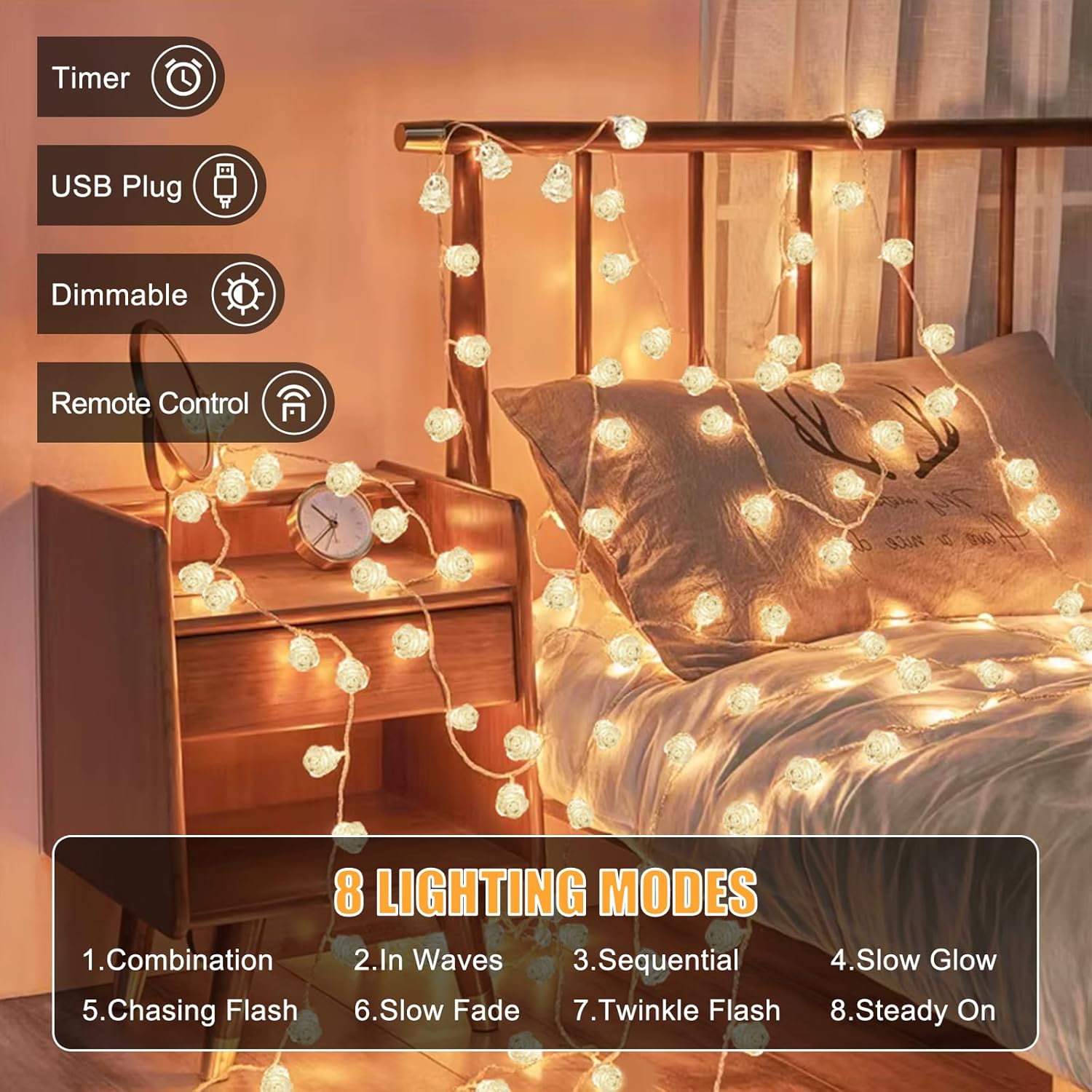 - Special Feature : Dimmable, Timer, Twinkling, Waterproof