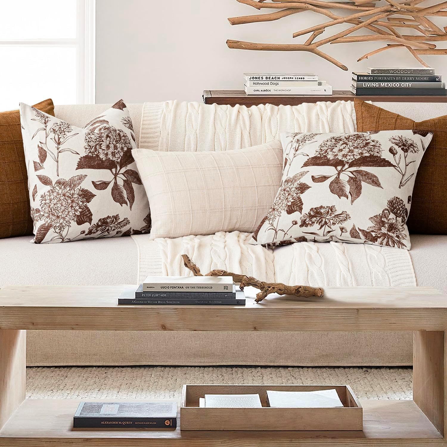 Foindtower Set of 2 Linen Floral Throw Pillow Covers Vintage Accent Print Decorative Cushion Covers Farmhouse Boho Home Decor for Sofa Chair Couch Bedroom Living Room Outdoor,22×22 Inch,Dark Brown