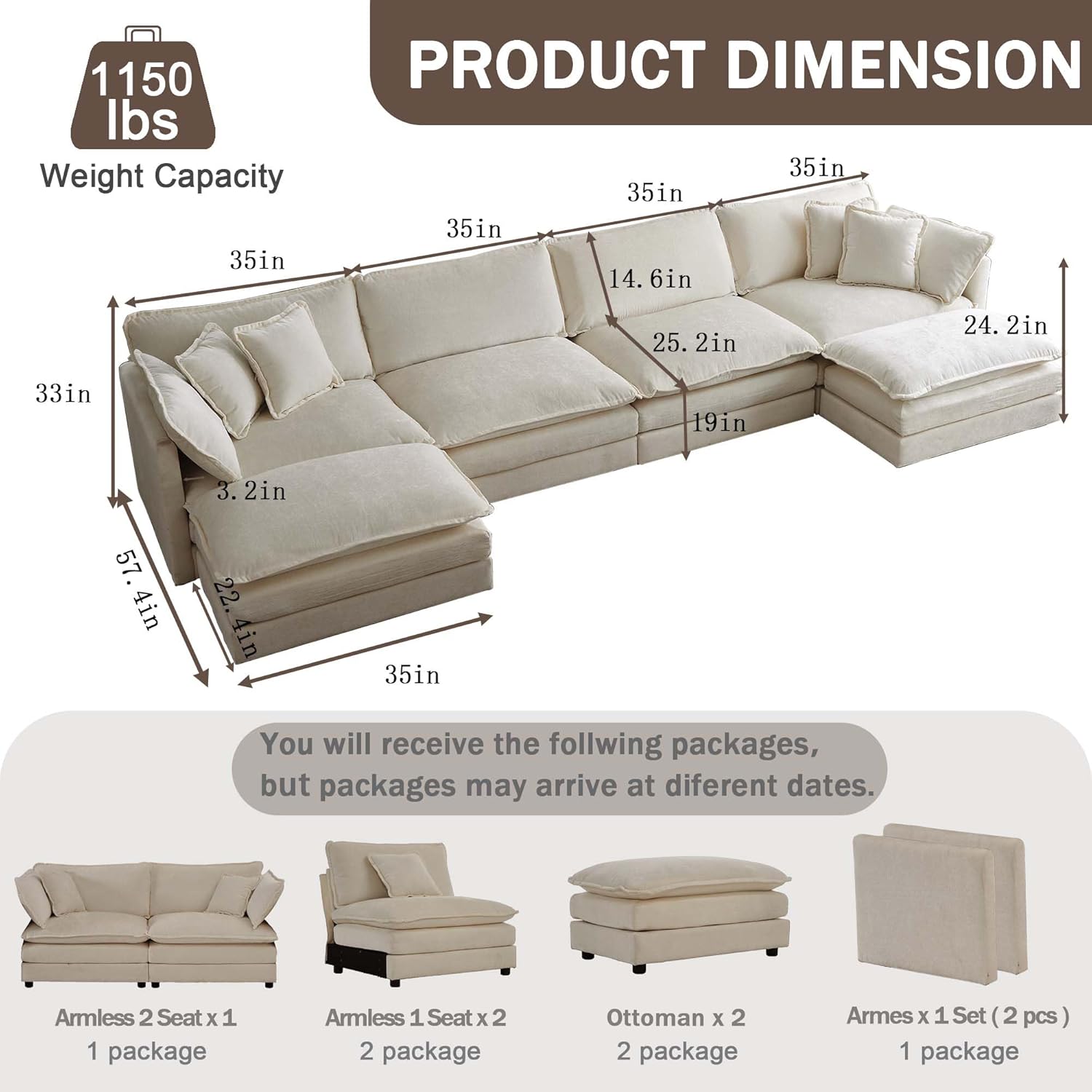 - Premium Comfort & Customizable Sizing: Available in 146.5" U-Shape, 146.5" L-Shape, 111.5" U-Shape, 111.5" L-Shape, and 76.7" L-Shape, this modular sectional sofa adapts to any room size. Featuring ultra-plush 3-layer chenille cushions with high-resiliency foam, it offers cloud-like softness whether lounging, sitting, or napping. Perfect for living rooms, apartments, offices, or dorms.