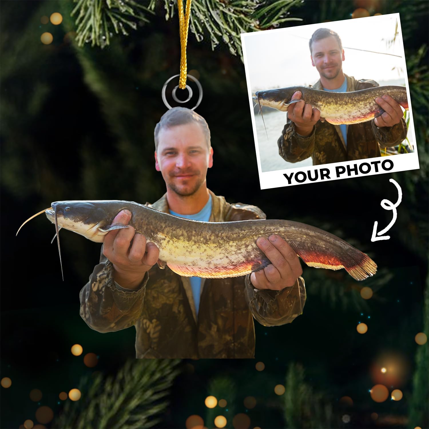 DOPTIKA Personalized 2D Fishing Ornaments for Christmas Tree, Personalized Photo Ornaments for Fish Lovers, Fishing Gifts for Fisherman, Fisherman Ornament Gifts for Dad Brother Husband