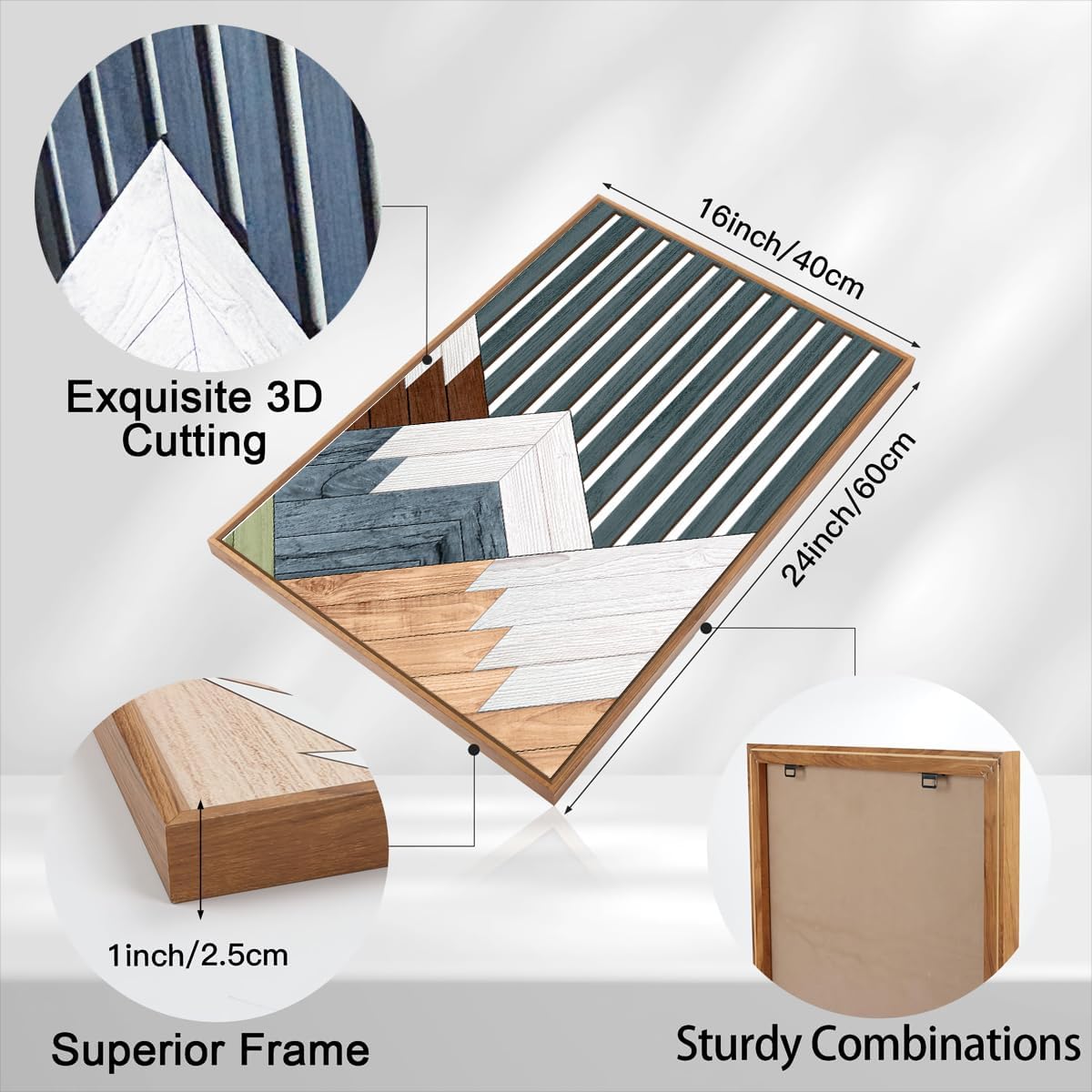 - 【Size for Easy Displaying】The Geometric Wooden wall art measures 16X24 inches(40X60cm) On the back of the high quality boho forest wall decor, two nails have been installed in advance, so you can easily hang or disassemble the abstract blue wall decor by using the nails and transparent silica gel mats provided in the package, very easy to operate.