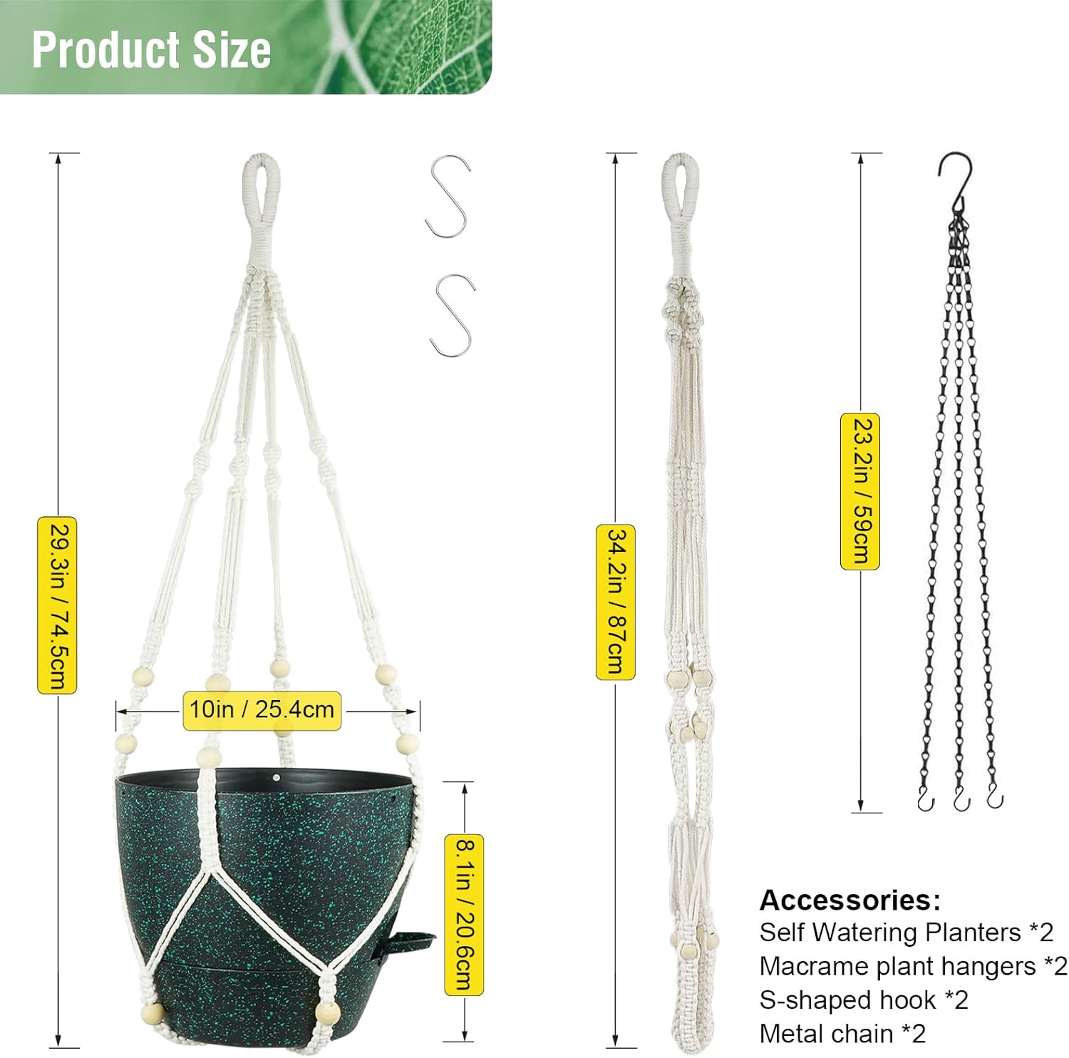- 【Two Types of Plant Hangers Available】One option is a corrosion-resistant metal chain, while the other is a modern, minimalist bohemian-style macrame plant hanger that brings fresh ideas to your home decor. Feel free to choose the one that matches your style