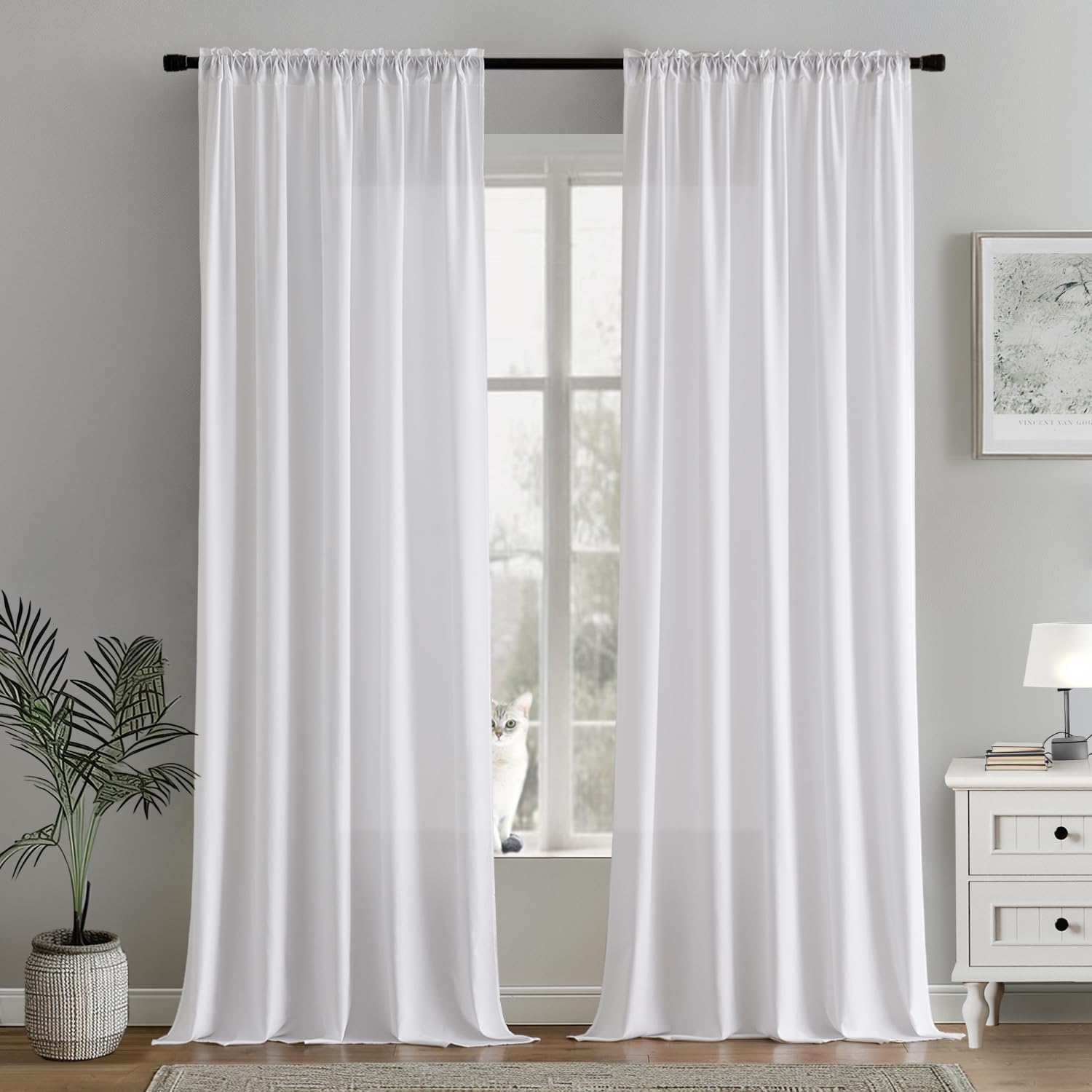 MIULEE White Privacy Sheer Curtains That Let Light in 96 Inches Long Non-See-Through Semi Sheer Curtains Light Filtering Window Curtain Drapes for Living Room Bedroom 2 Panels Set 42 X 96