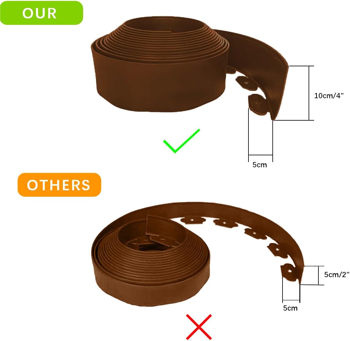 49FT Landscape Edging, 4 in Tall Garden Edging Borders with 75 Spikes,Flexible Lawn Edging Plastic Borders for Garden, Flower Beds, Pavement-Brown