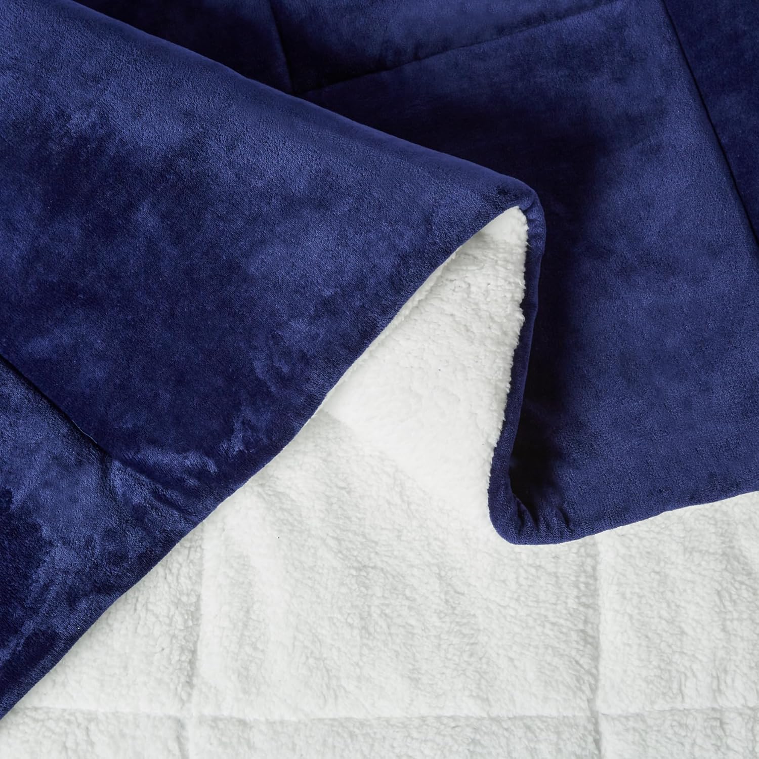 Amazon Basics Reversible Sherpa Comforter Set with Pillow Sham, Navy, Queen/Full