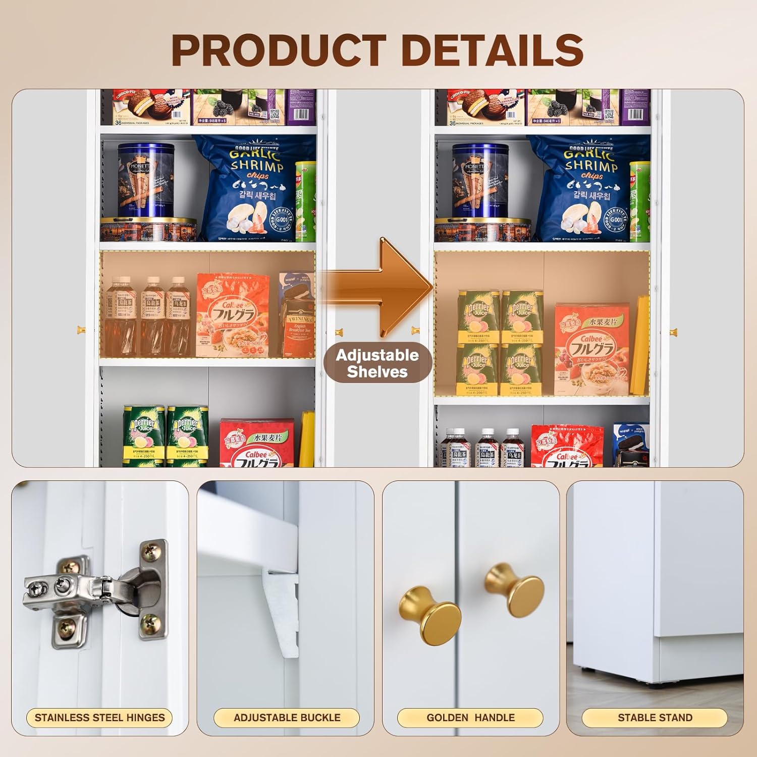 5 Tier Metal Curio Cabinets, Modern Bookshelf Cabinet with 4 Adjustable Shelves, Cabinet Display Case for Home Office, Living Room, Pantry (White-23.54W-Metal Door)
