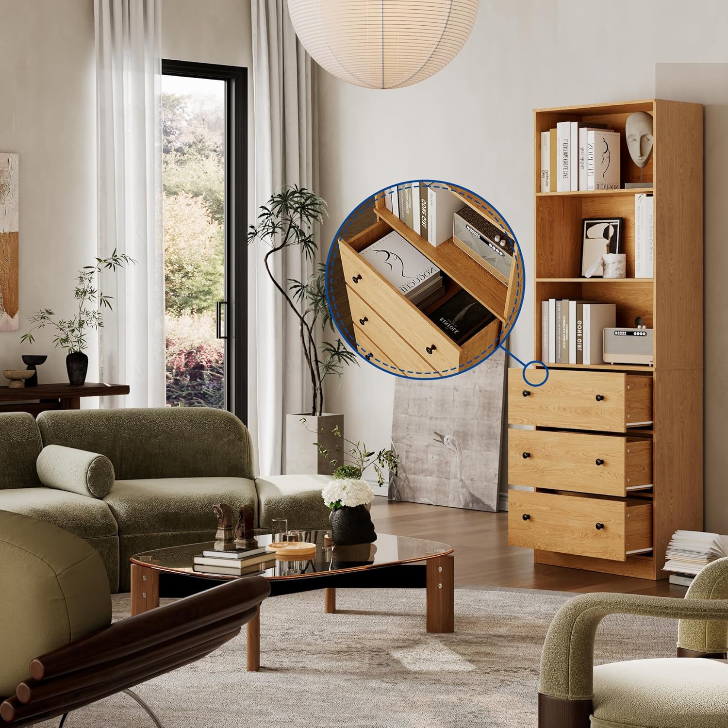 - ăEnhanced Organization & Tidinessă- The multi-layer design of this modern bookshelf is ideal for organizing your home or office. Keep books, office supplies, and documents organized and easy to access. The open shelves are perfect for displaying decorative items, while the drawers are ideal for storing files, stationery, or smaller household goods. Easily organize your space and access frequently-used items while keeping others neatly hidden, giving your room a more polished and cohesive look.