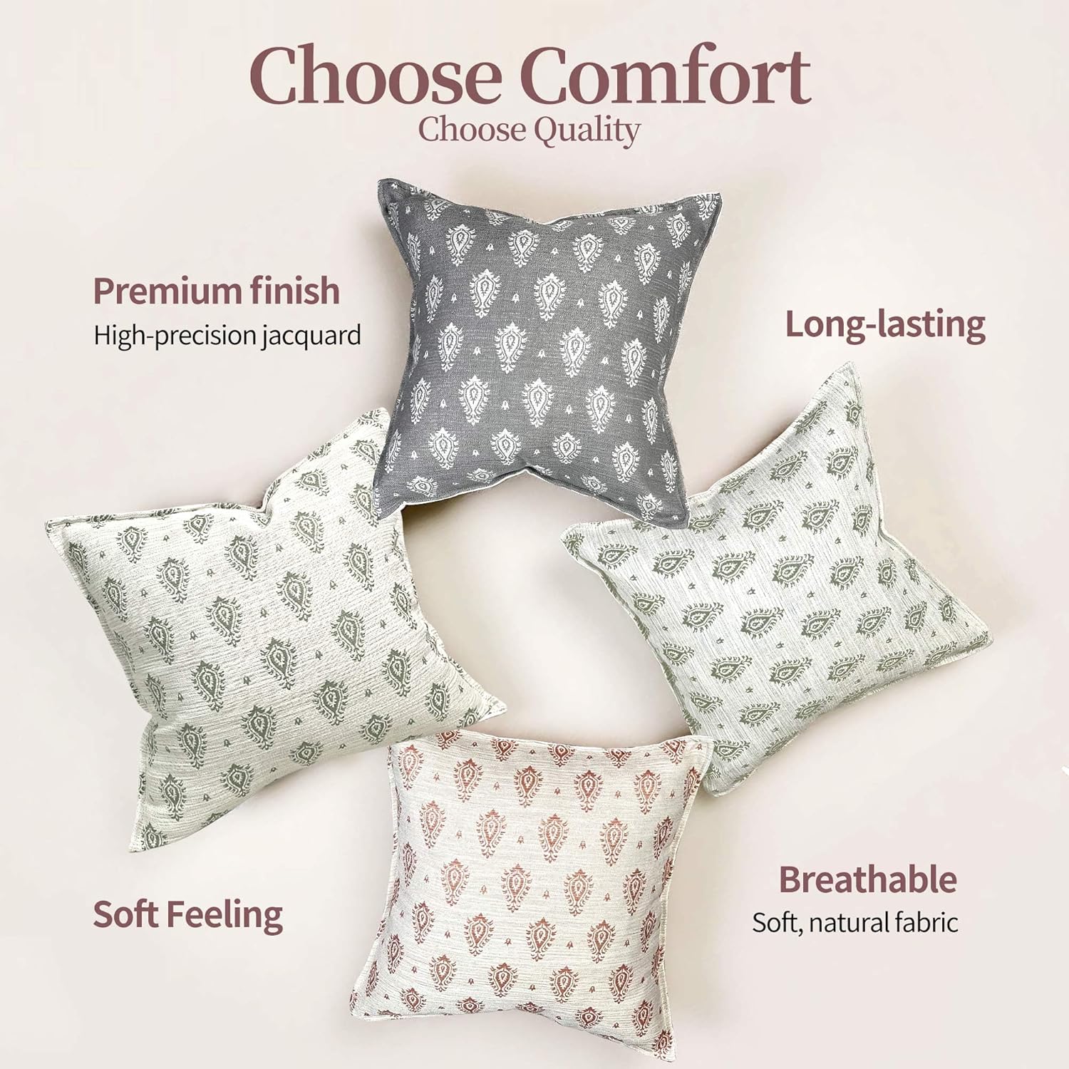 Floral Pillow Covers 18x18 Set of 2 Decorative Throw Pillow Covers Neutral Floral Paisley Farmhouse Pillow Covers for Sofa Couch Bed