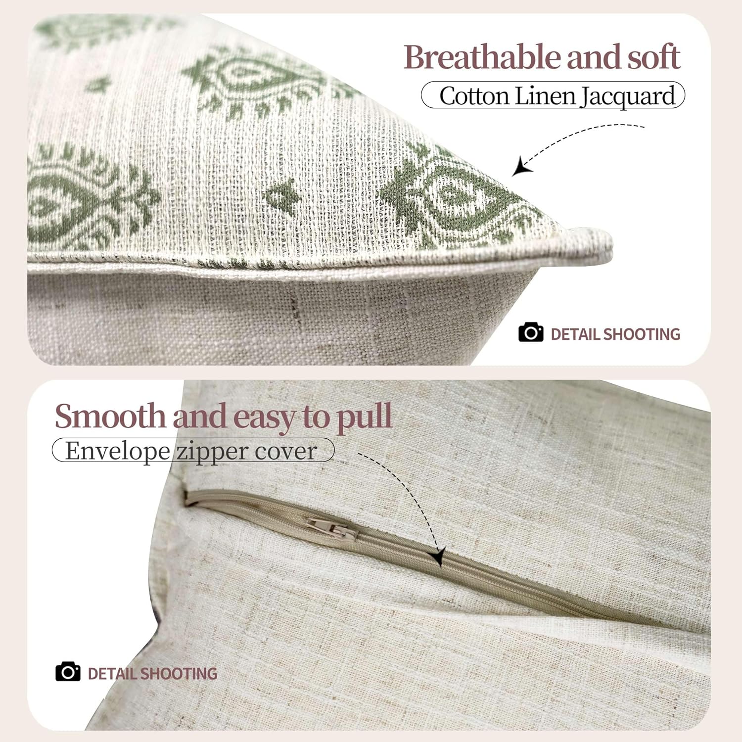 - Zipper Cover Design: The soft cotton throw pillow covers feature a zipper cover design. This design makes it extremely convenient to insert and replace the pillow inserts. Moreover, it can prevent the zipper from scratching your fingers during use. The zipper is well-hidden, making the pillowcase look more beautiful