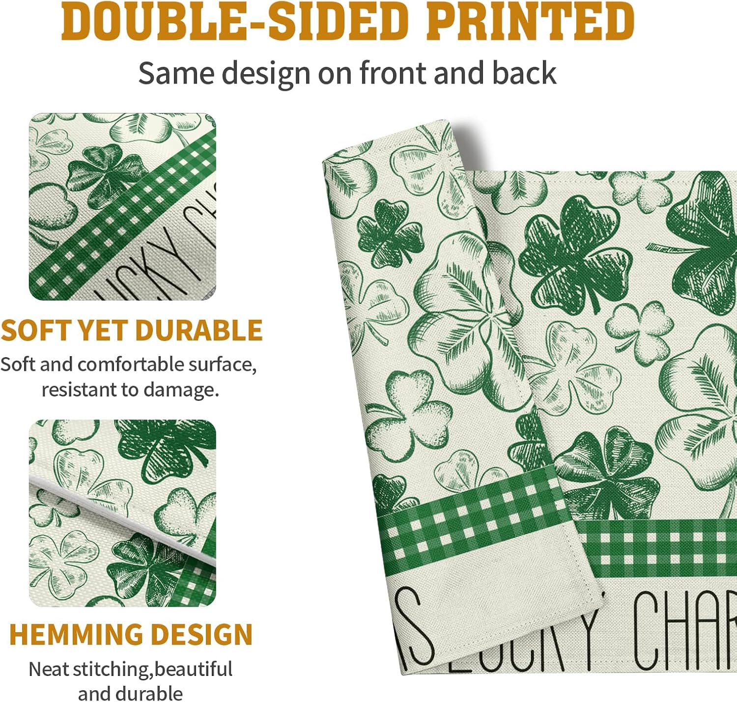 - TABLE DECORATION: St Patrick's Day decorative table placemats feature high-definition printing technology for crisp, clear patterns and vibrant colors; watercolor green placemats with a lucky clover pattern; unique and eye-catching seasonal patterns add charm to St. Patrick's Day placemats, creating a festive atmosphere for your party