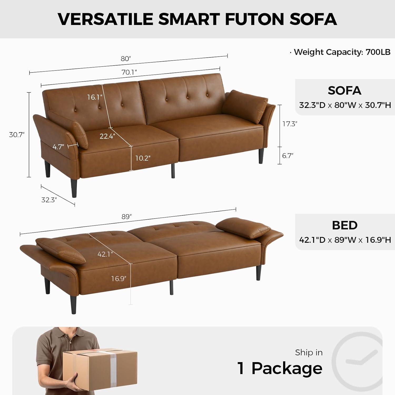 - 【Easy Installation】 This sleeper couch is delivered in a whole package: size is 36"Lx23"Wx23"H and weight is 93 lbs. Sofa bed comes with detailed instruction and tools, all parts of the sofa are pre-drilled and cut, you only need to tighten the screws in the key parts, the sofa will be assembly completed in less than 20 minutes for two people. Please expect color variance between actual product and photos due to different lighting conditions and online viewing device settings. We offer 24 hours on weekdays customer services. If you have any questions, please feel free to contact us