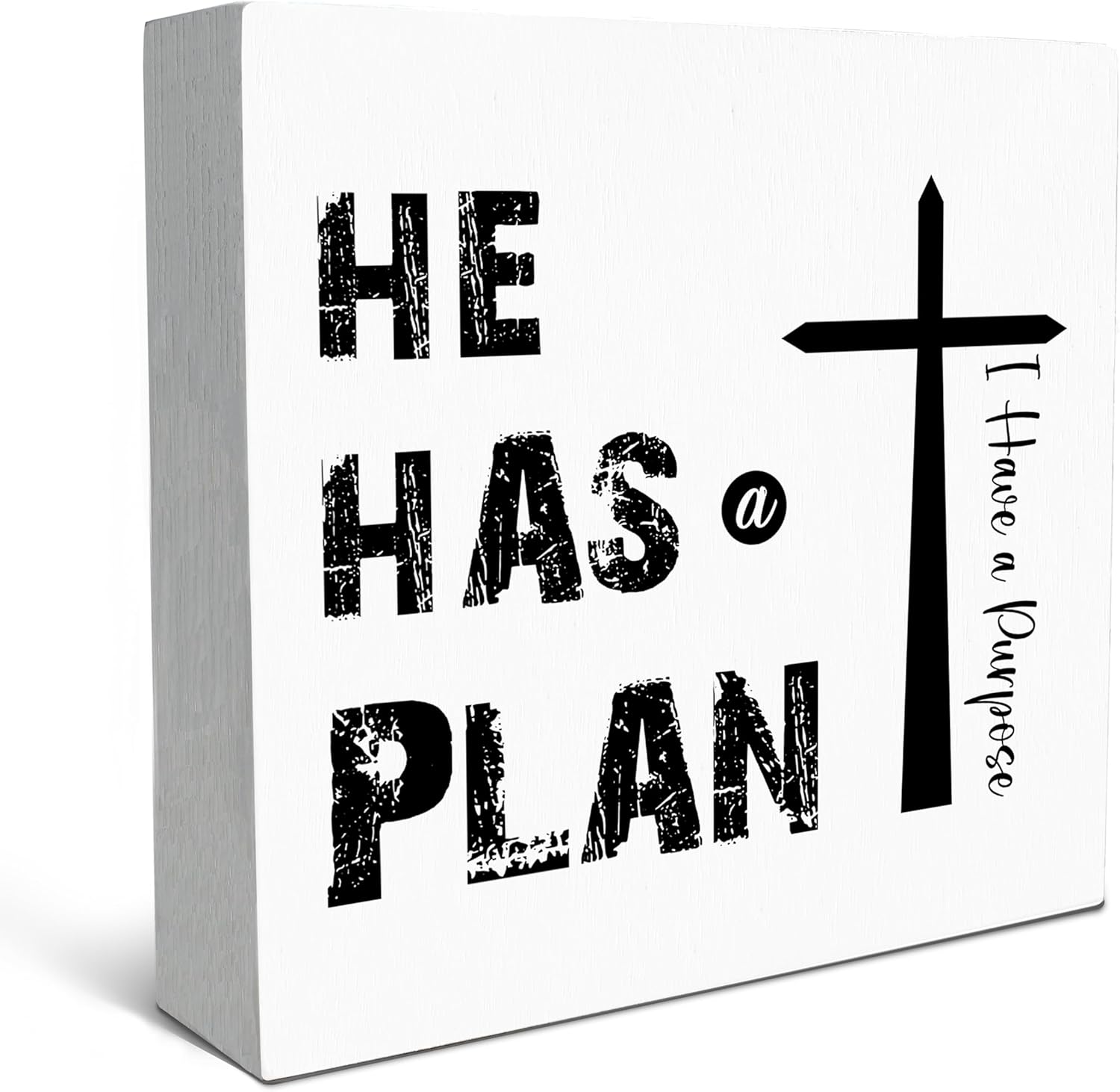 SRADMO He Has a Plan Jesus Wood Box Sign Desk Decor, Bible Verse Decor, Christian Theme Wooden Block Box Sign Decoration for Home Office Shelf Table Decors
