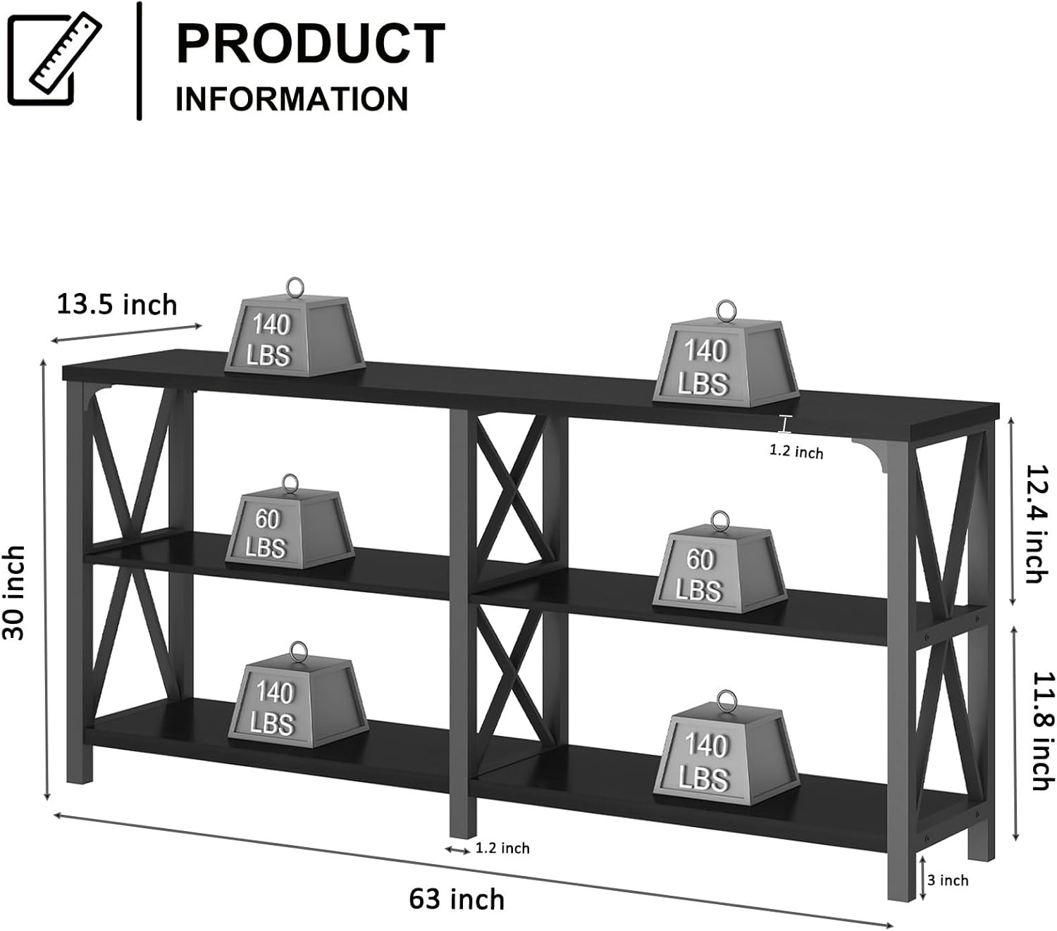 LVB Industrial Entryway Table, Farmhouse Rustic Console Tables Behind Couch, Long Metal Wooden Sofa Table with Storage Shelf, Modern Foyer Hallway Table for Living Room Bedroom, Black Oak, 63 in
