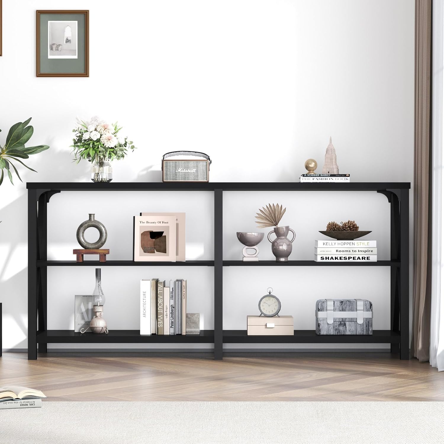 - Stylish Black Finish: The black color of the console table exudes contemporary charm, adding a touch of sophistication to your home decor. The smooth and elegant finish perfectly complements the sturdy oak and metal frame, creating a beautiful and harmonious addition to your living space.
