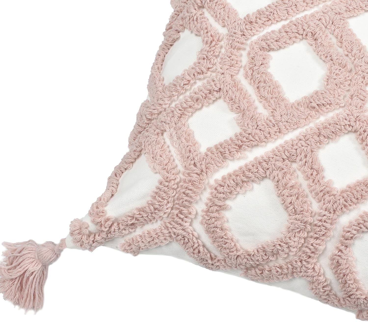 Boho Pillow Covers 18X18 Inch Boho Tufted Throw Pillow Covers Decorative Tassels Cushion Cover Farmhouse Pillow Case for Couch Sofa Bed Living Room Bedroom, Blush