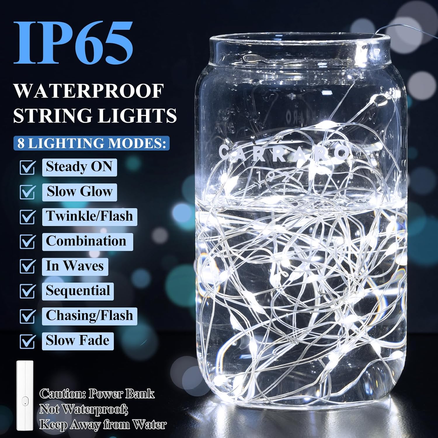 - Tangle-Free & Water-Resistant: Say goodbye to messy wires! These IP65-rated mini LED fairy lights battery operated feature tangle-free reinforced wiring that withstands humidity, perfect for mason jars and indoor plants. Built to last, they outshine ordinary battery string lights. Note: the included power bank is not waterproof—keep it dry for safe use