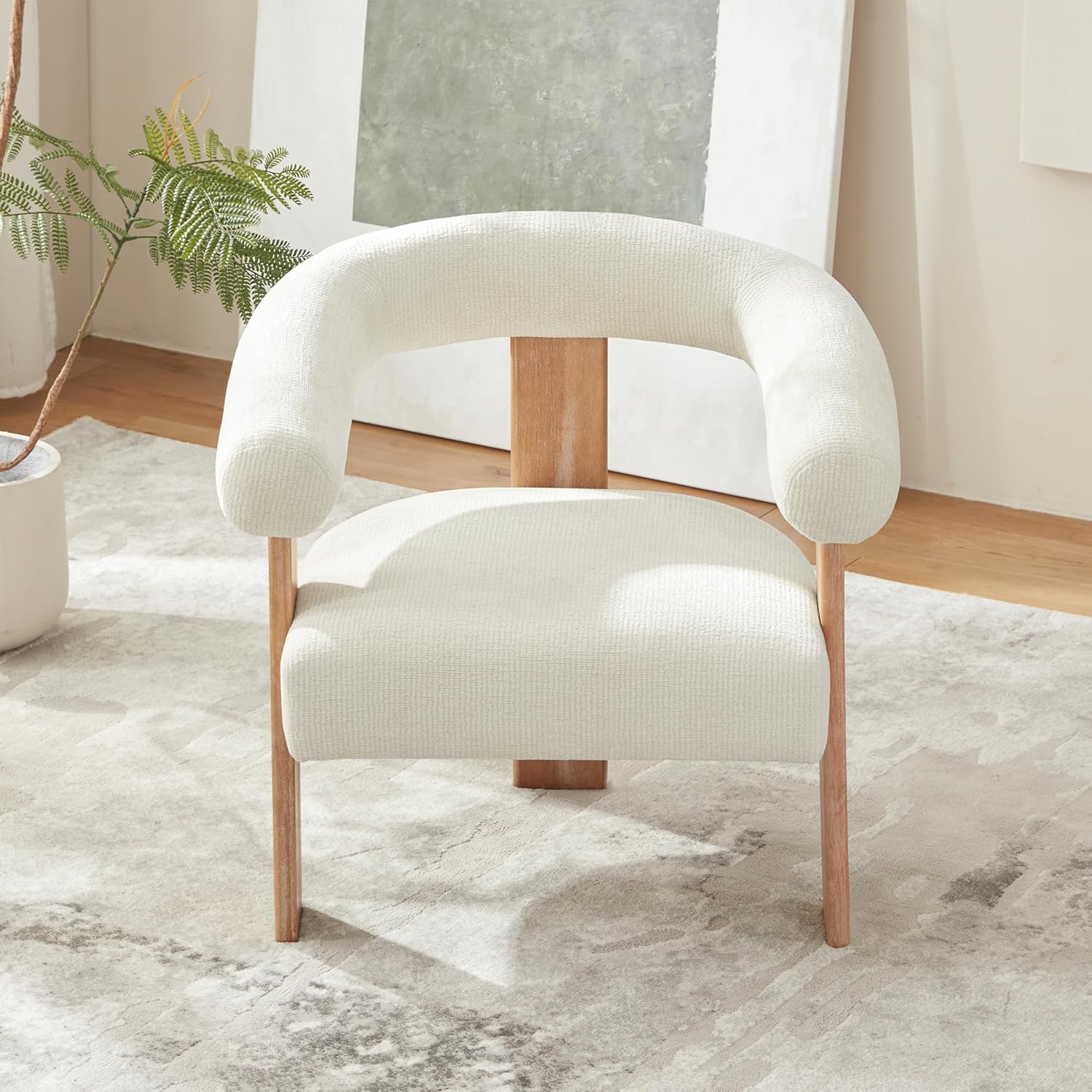 VKNOW Accent Chair Living Room Chair, Modern Upholstered Armchair with Solid Wood Legs, Comfy Barrel Arm Chairs for Living Room Bedroom, Cream