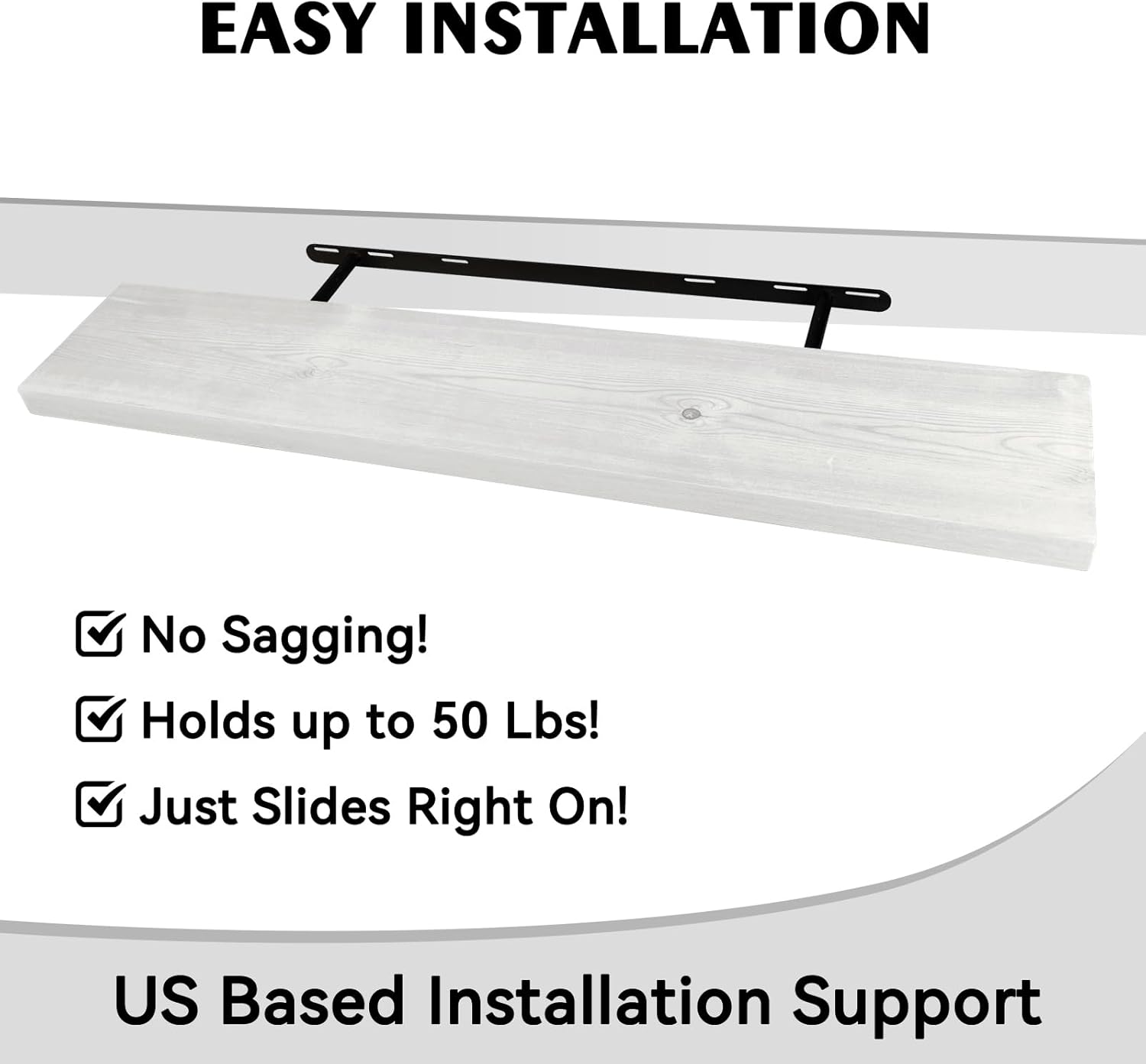 - NO SAGGING! MORE PERFECT FOR AMERICAN WALLS : BGMG premium wood shelves are built to last and hold up to 50 pounds using our smart brackets designed specifically for American wall studs, which are typically 16 inches apart! The brackets warp slightly upward to prevent the shelves from sagging and falling off