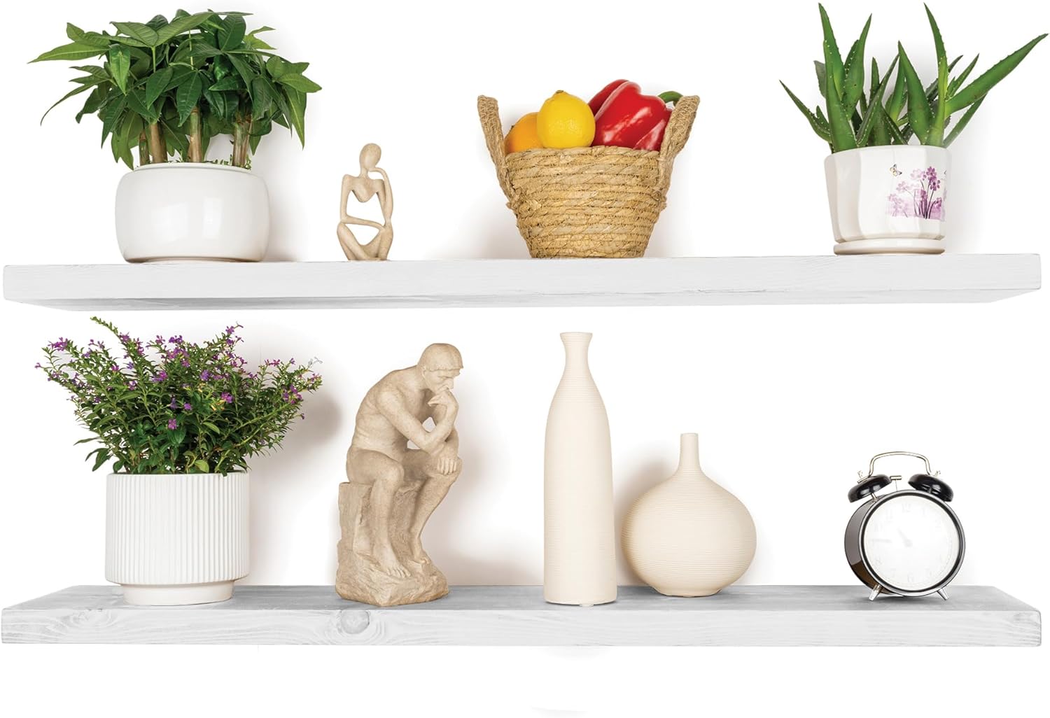- MODERN RUSTIC LOOK - The48 inch floating shelves are made of 100% natural pine, and the wood has different nodes and grains, so the color of each shelf may be slightly different, but equally stunning